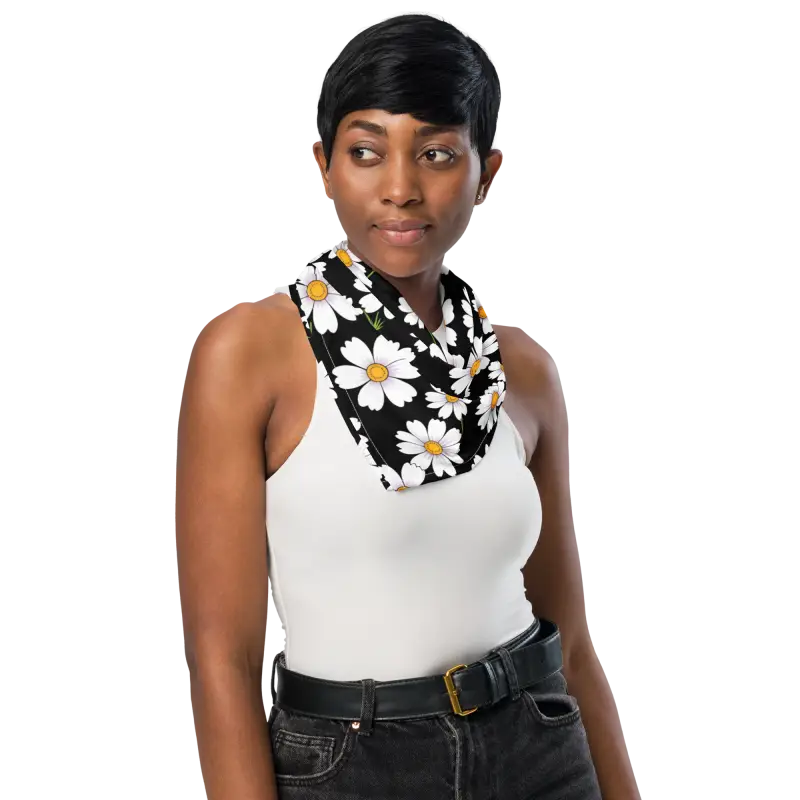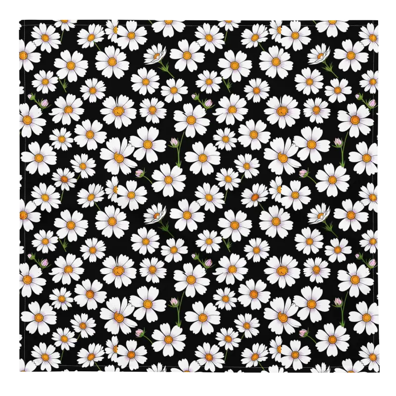 Eco Friendly Bandana - White Flowers Print Bold Design - DipaliZ