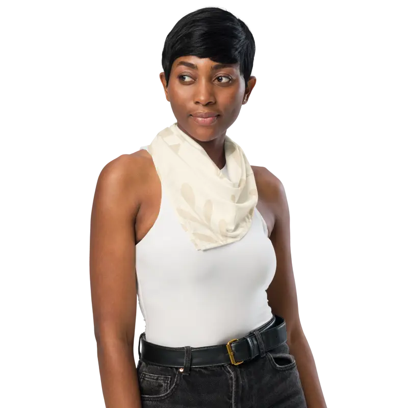 Foliage Charm all-over print bandana Hot Style Boost brings a burst of nature to every outfit. Picture yourself strolling through sunlit streets with soft cream hues and leafy green accents dancing in the breeze. This print bandana transforms simple looks into modern lifestyle essentials you can feel as much as see.