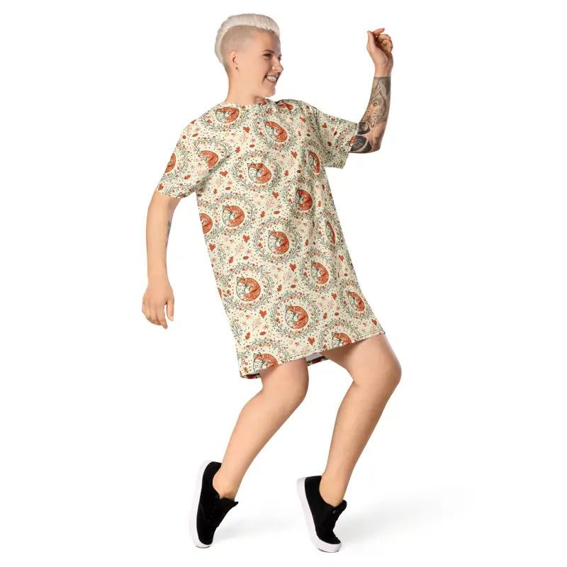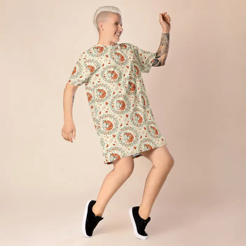 Imagine slipping into a dress that feels like your favorite worn-in tee but looks like you actually put thought into your outfit. The fox botanical pattern wraps you in nature-inspired artistry while the fabric skims your body with that perfect amount of ease that makes you forget you're even wearing anything structured. This isn't just another dress hanging in your closet—it's your go-to piece for literally everything from lazy Sunday mornings to impromptu dinner dates. The comfortable oversize fit means you can breathe, move, and live without constantly adjusting or feeling restricted, while the eye-catching design ensures you never look like you just rolled out of bed even if you technically did. That magical combination of effortless comfort and intentional style is exactly what makes this piece impossible to stop wearing once you start.