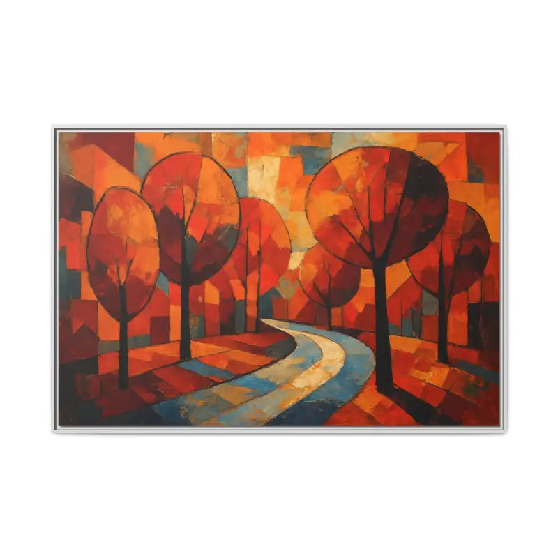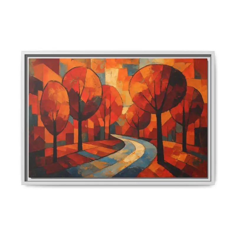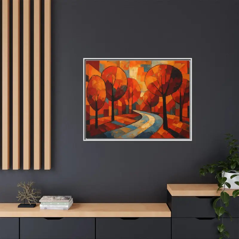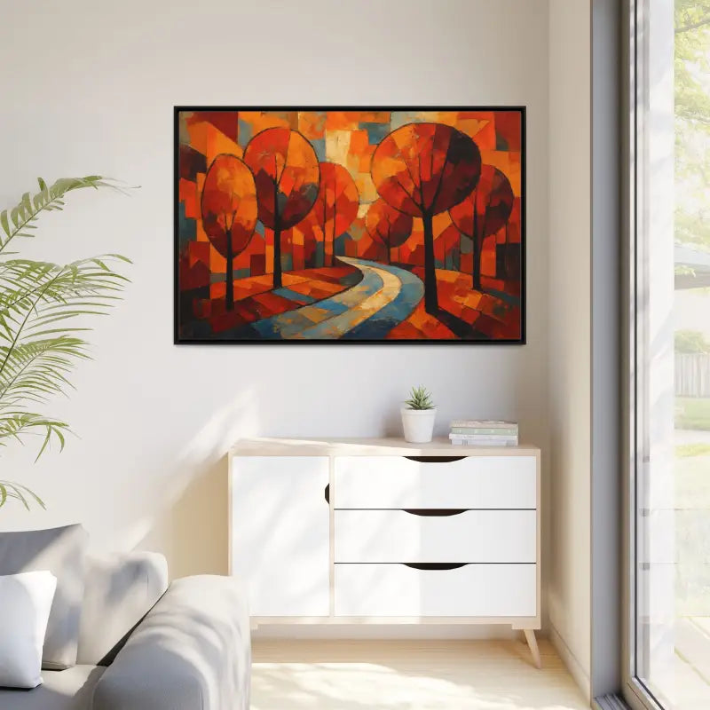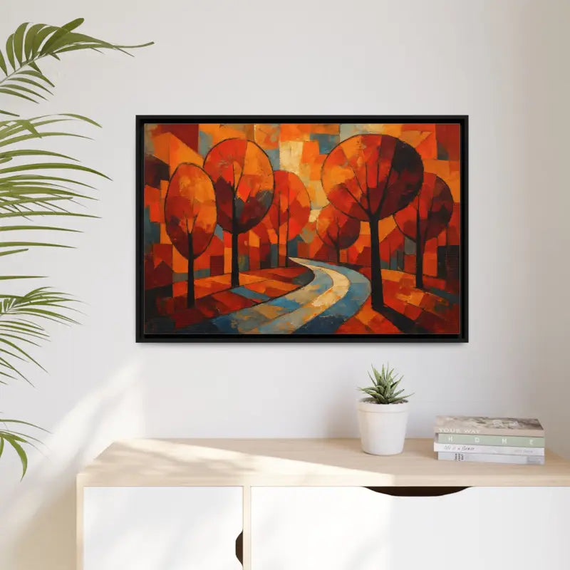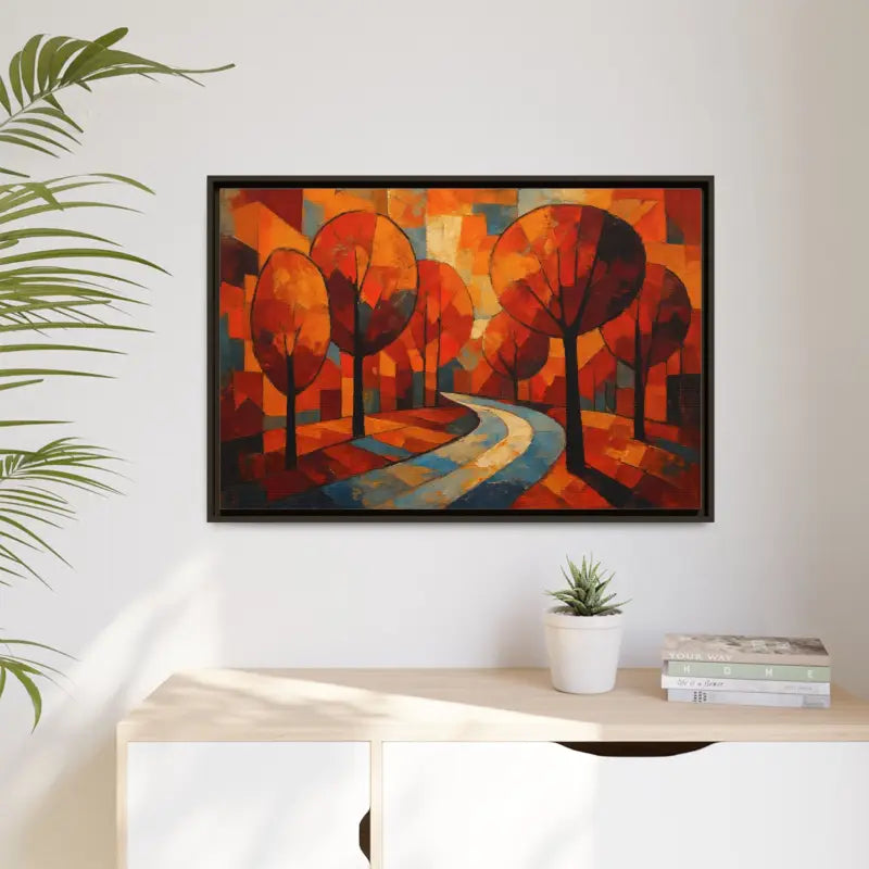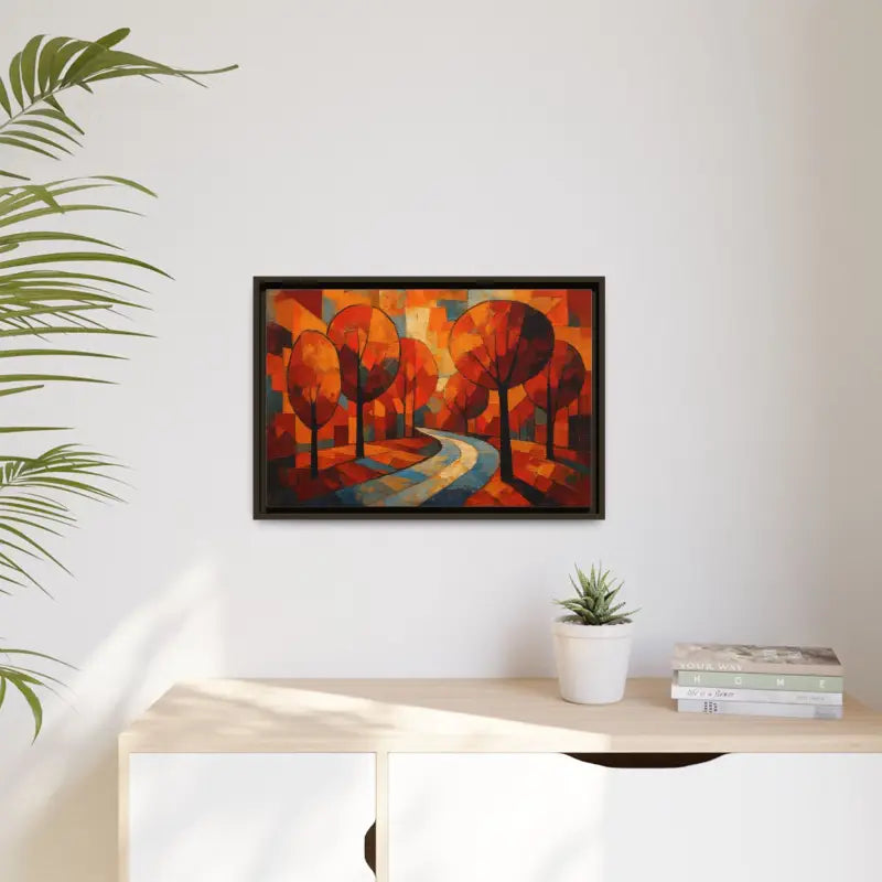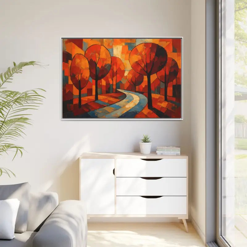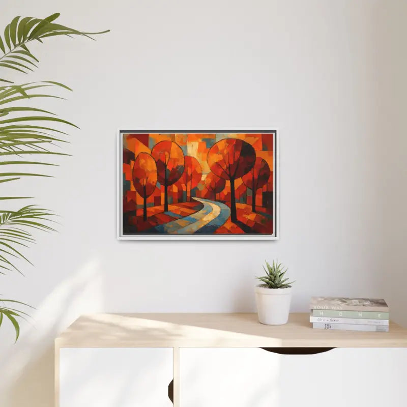 Step into a sunlit forest and feel the crisp air brush your cheeks with this framed canvas art that brings home decor to life. Dive into vibrant oranges, deep ambers, and soft golds as abstract tree artwork whispers cozy autumn tales.