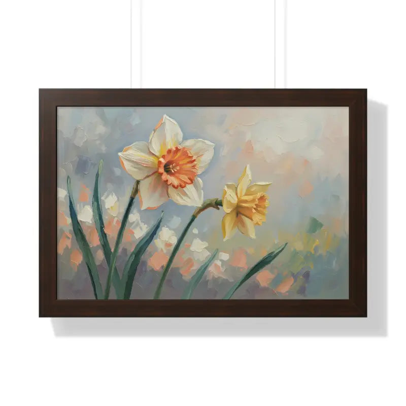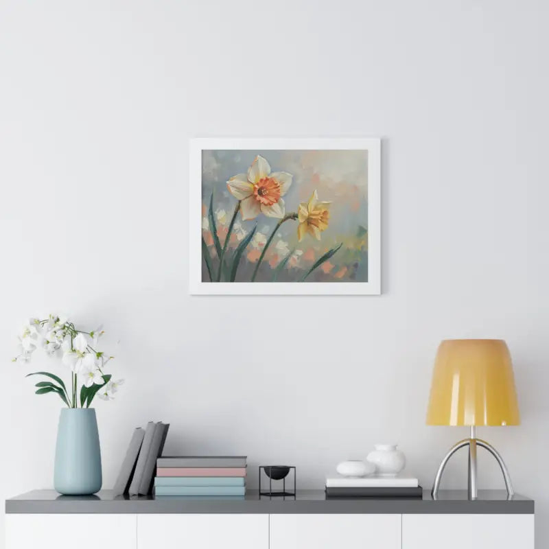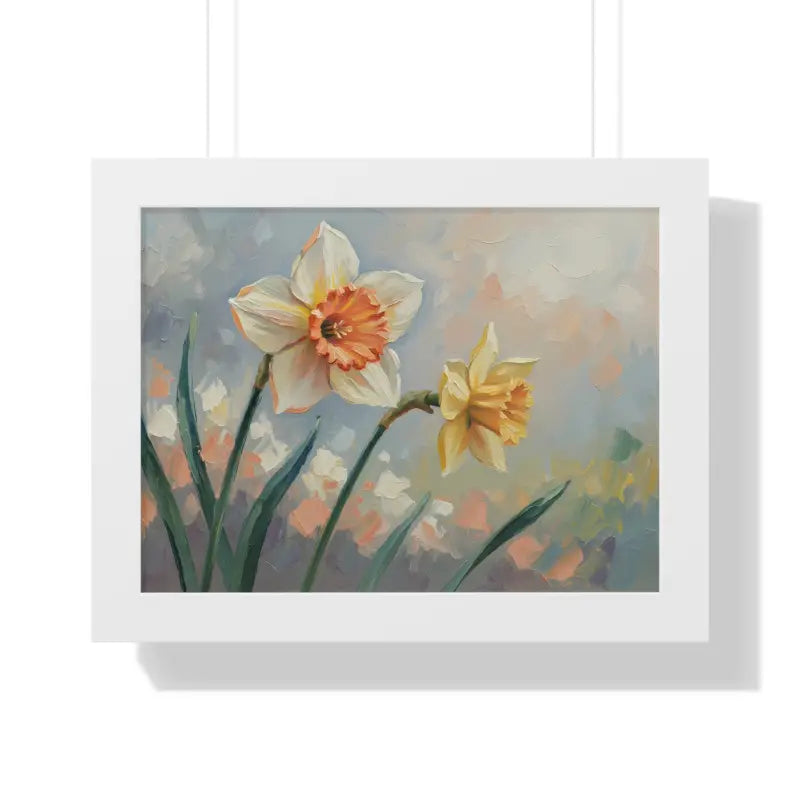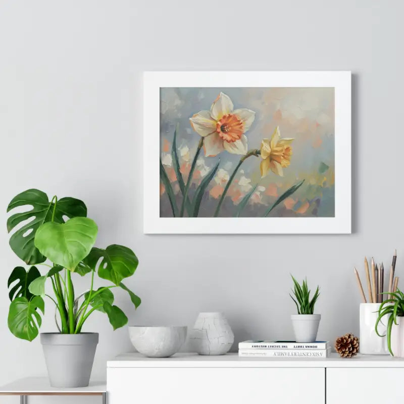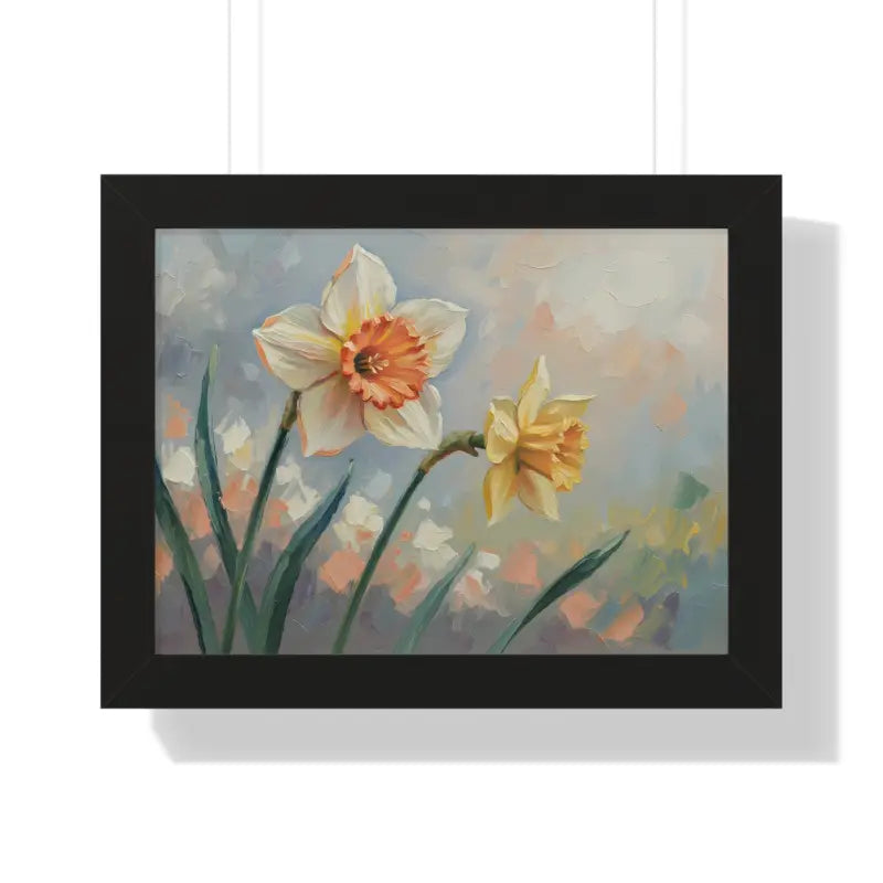 Wake up your walls with the gentle charm of this daffodil floral painting that feels like a sunlit stroll through a blooming garden. Each petal glows with soft yellows and creamy whites, bringing a fresh, floral calm to any room.