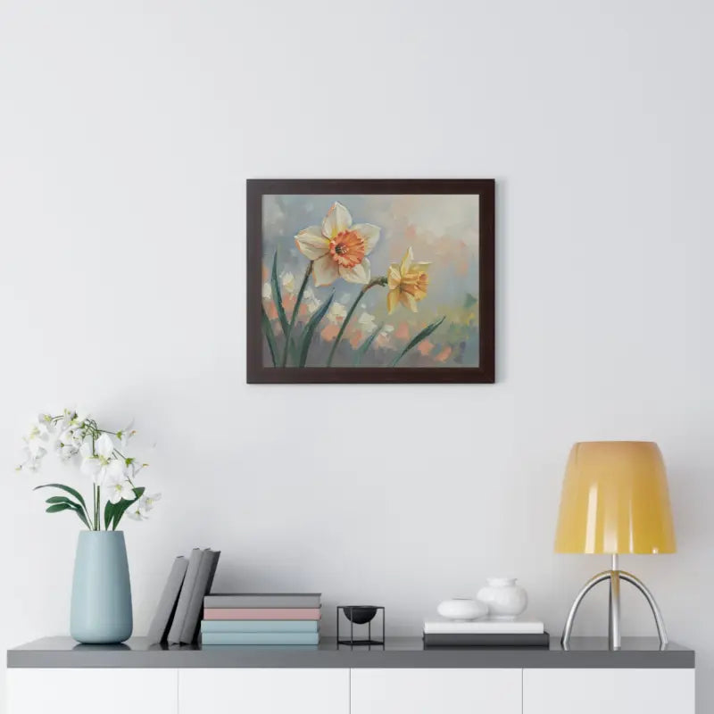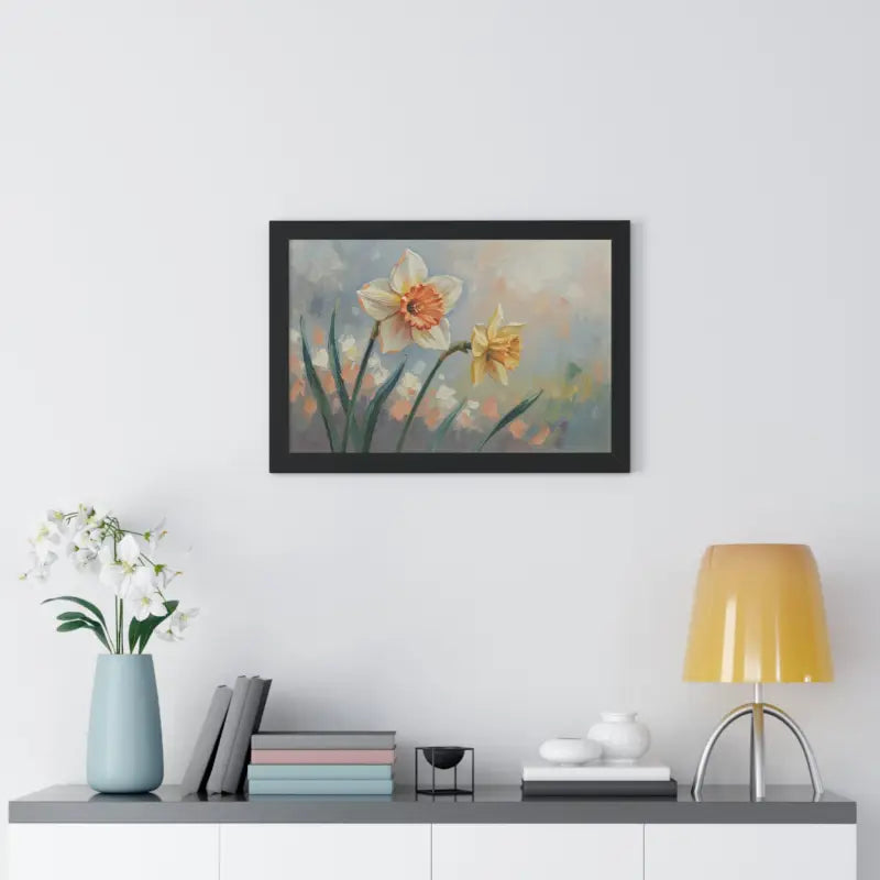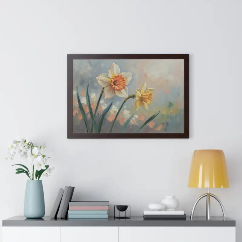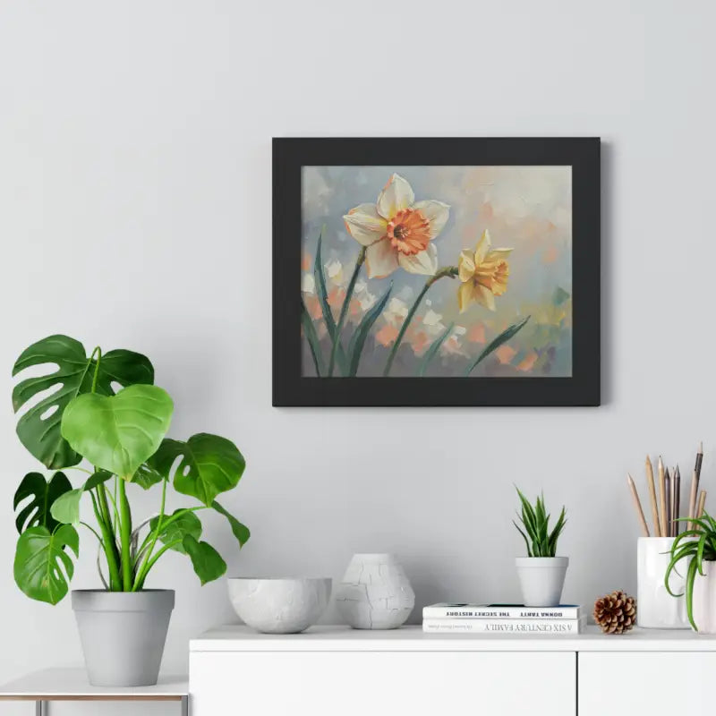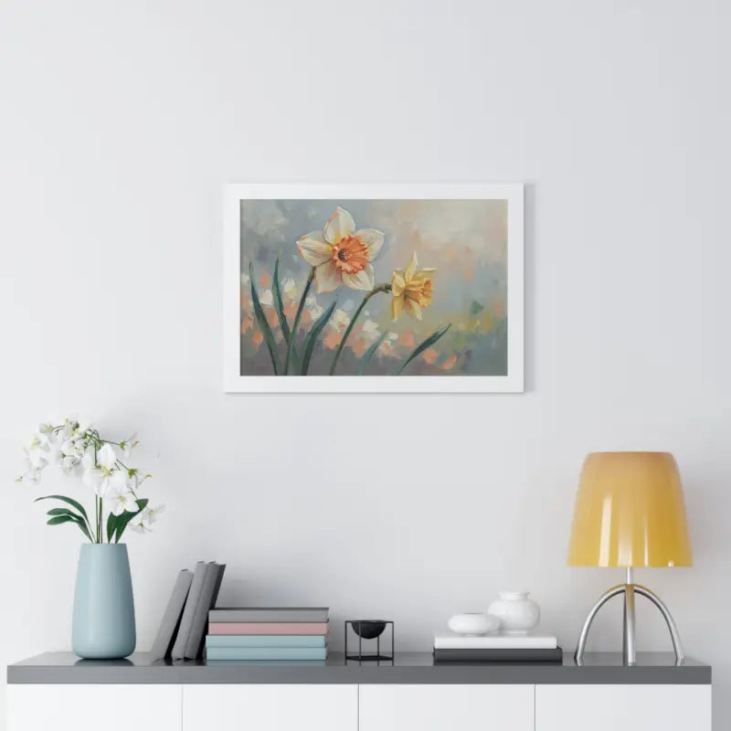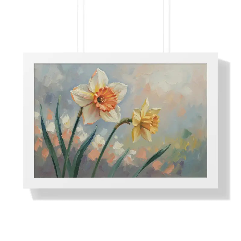 Wake up your walls with the gentle charm of this daffodil floral painting that feels like a sunlit stroll through a blooming garden. Each petal glows with soft yellows and creamy whites, bringing a fresh, floral calm to any room.