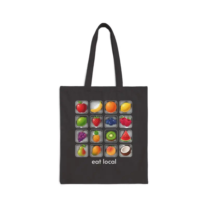 Picture yourself strolling through the farmers market with this delightful canvas tote bag showcasing a cheerful grid of fruit icons. Juicy watermelon slices, sunny bananas, crisp apples, plump berries, and tropical kiwi create an eye-catching pattern that radiates farm-fresh energy wherever you roam.