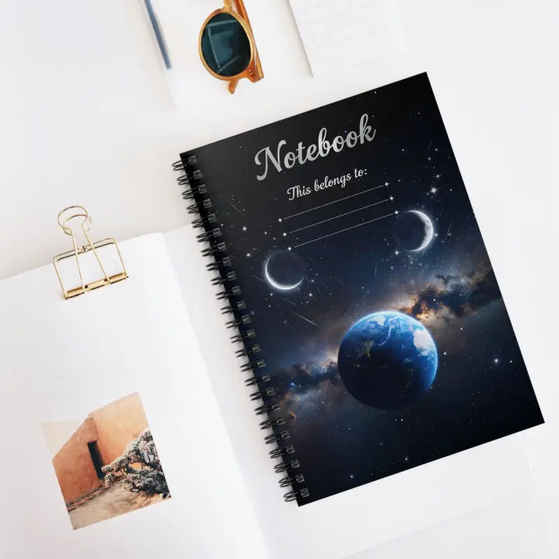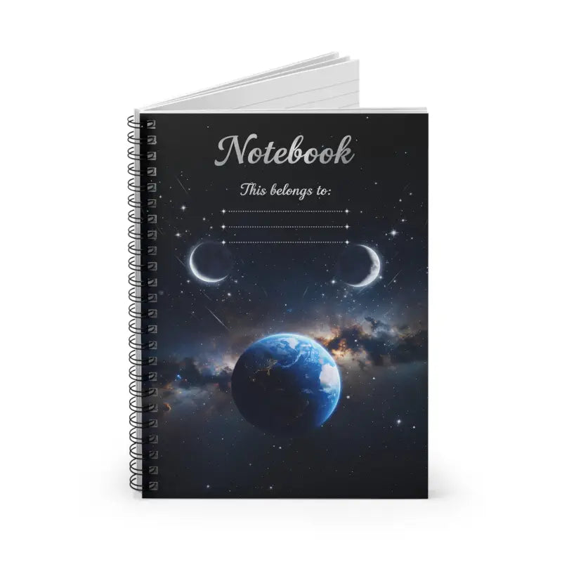 Galaxy Moon Earth Spiral Notebook - Cosmic Design - DipaliZ