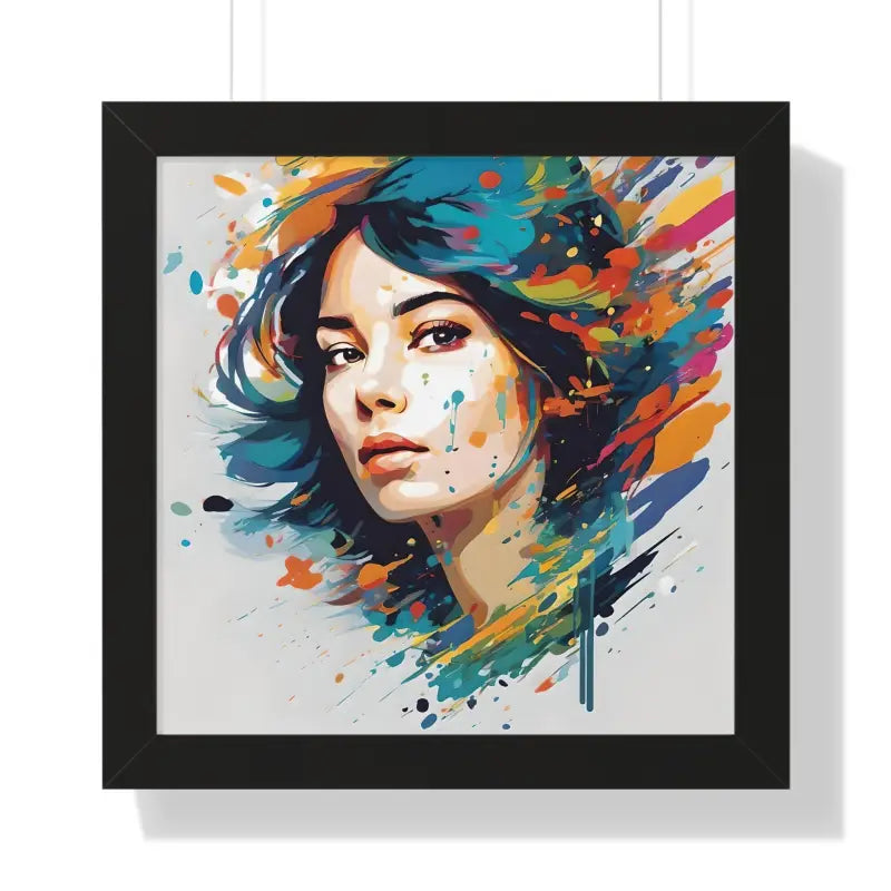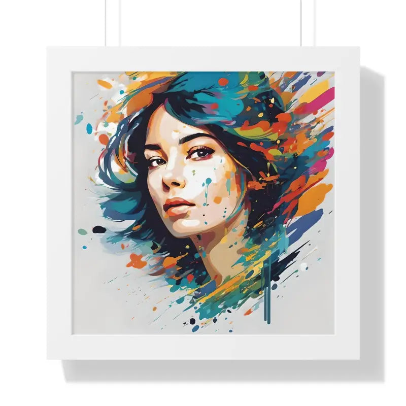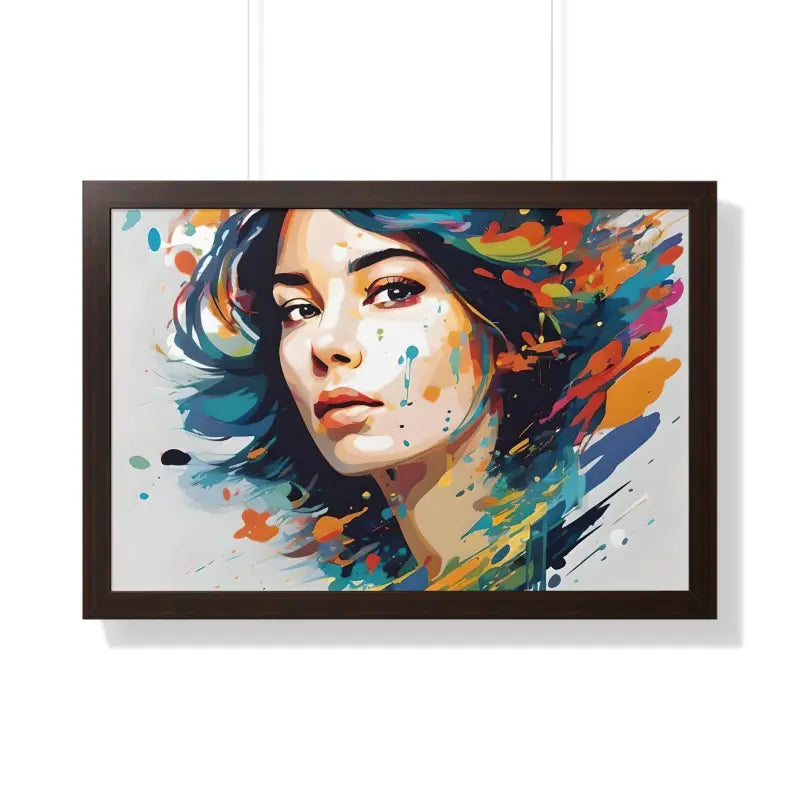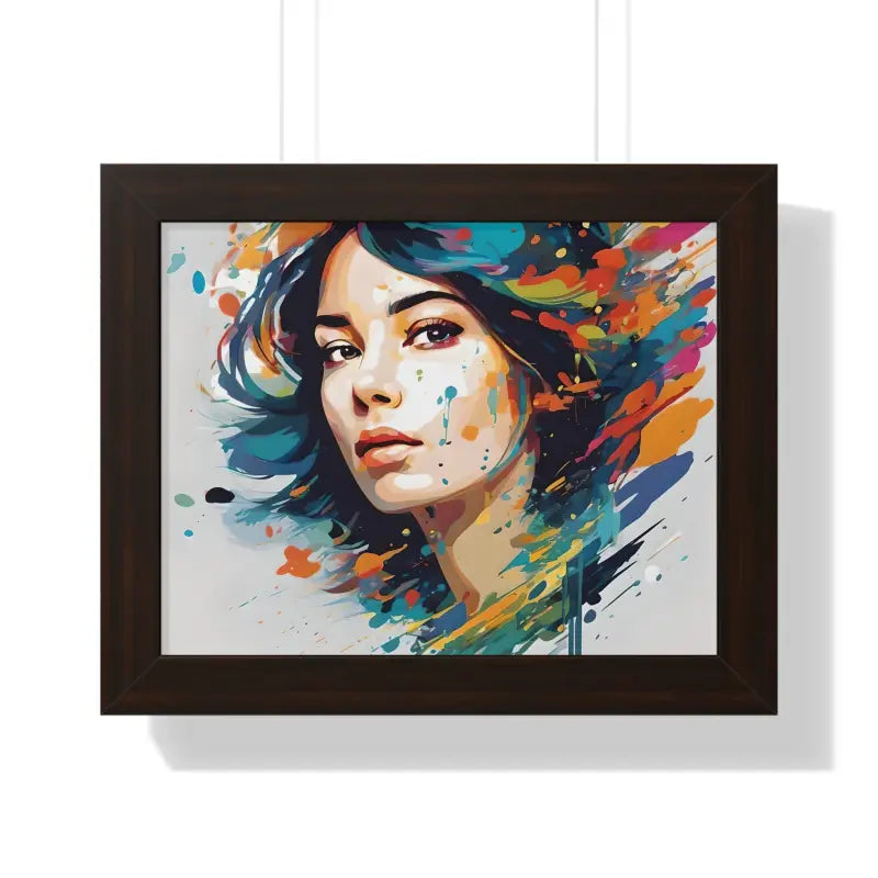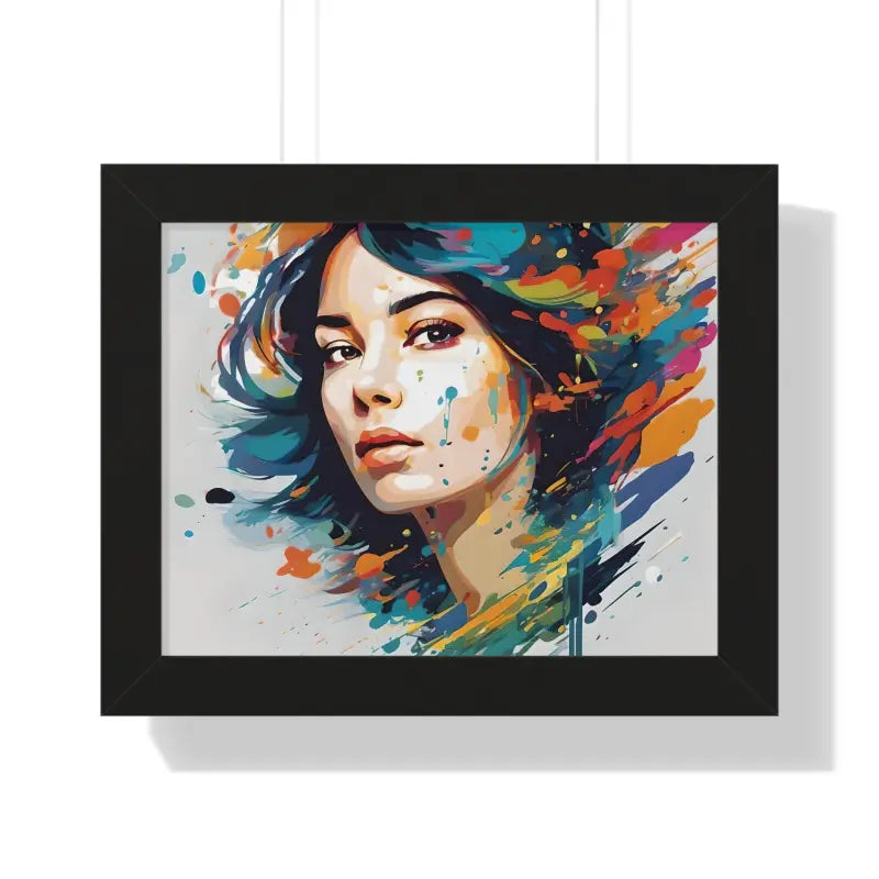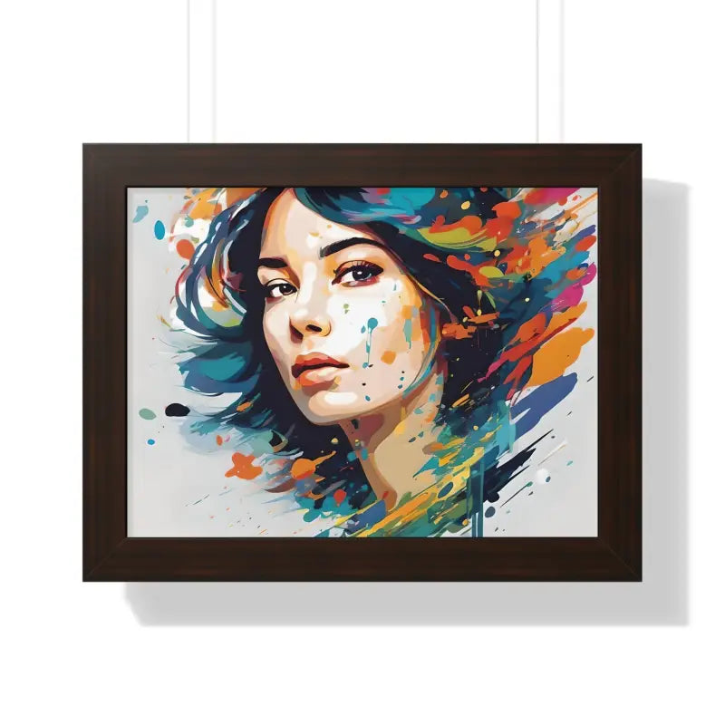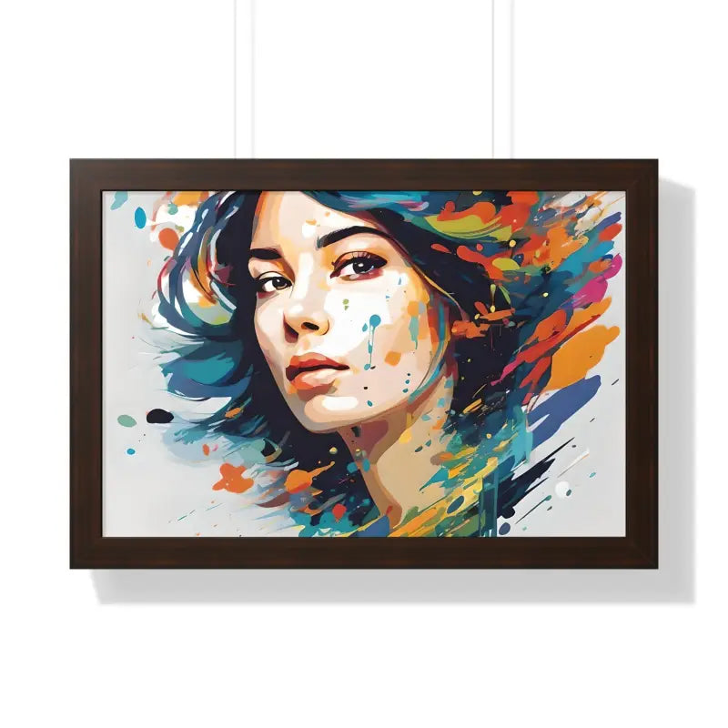 A pretty woman's face splattered with water color, Framed Horizontal Poster
