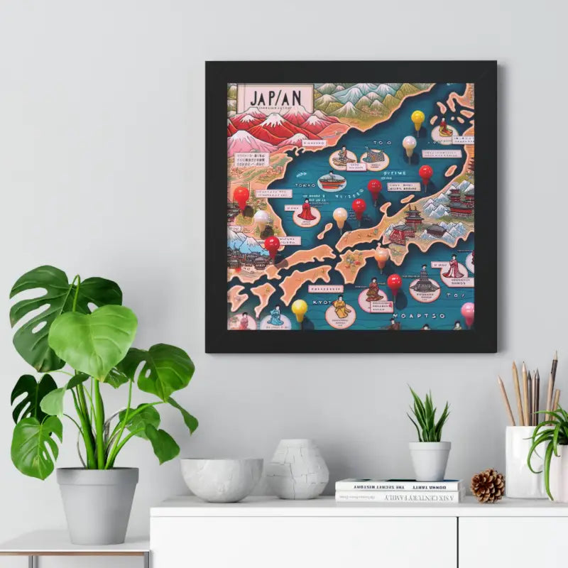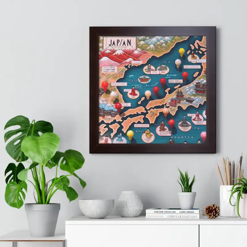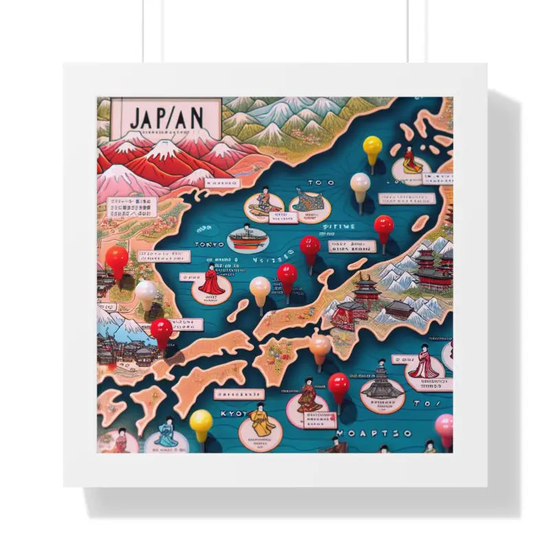 Graphic representation of map of Japan, Framed Horizontal Poster