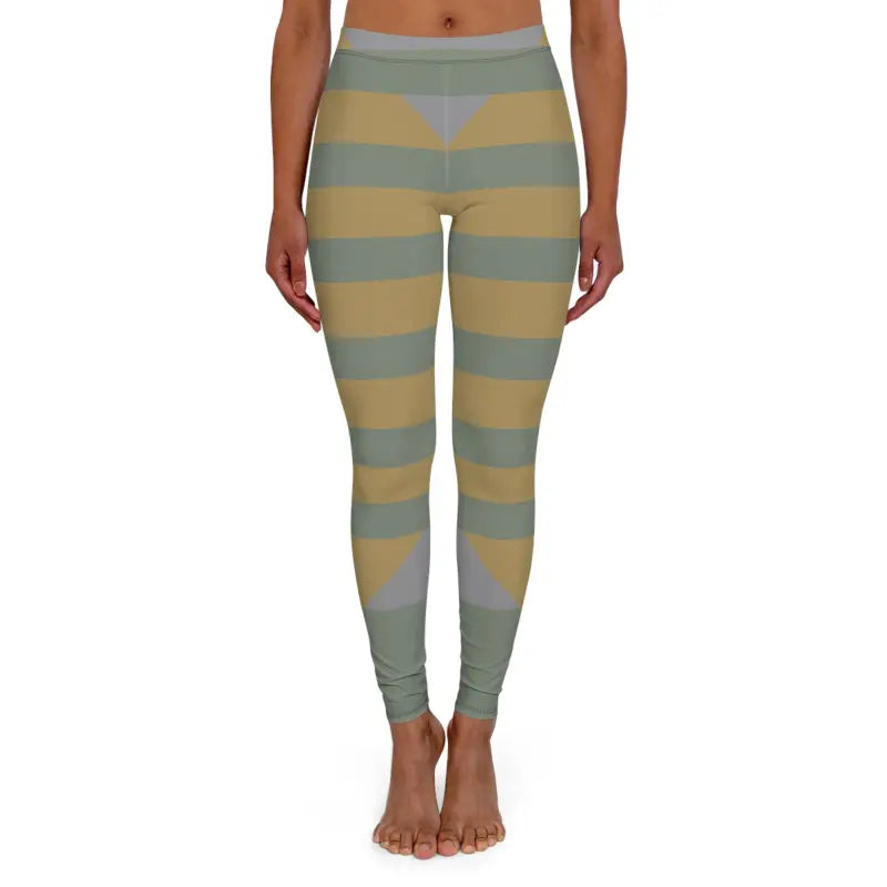 Picture yourself rolling out your yoga mat as morning light streams through the window, and you're already dressed in leggings that feel like a second skin but look like a work of art. These geo colorblock leggings in olive and mustard tones are designed for women who refuse to choose between style and performance. The moment you slip them on, you'll notice how the soft, supportive fabric hugs your curves in all the right places while the muted earth tones create a sophisticated vibe that transitions effortlessly from your morning flow to coffee runs and everything in between. The geometric colorblocking isn't just pretty—it's a statement about your aesthetic, blending sage green, warm taupe, and slate gray in a modern pattern that feels both grounded and contemporary. Whether you're holding a warrior pose, running weekend errands, meeting friends for brunch, lounging at home with a good book, or layering them under an oversized sweater for a casual-chic look, these mustard yoga tights adapt to your lifestyle without missing a beat.