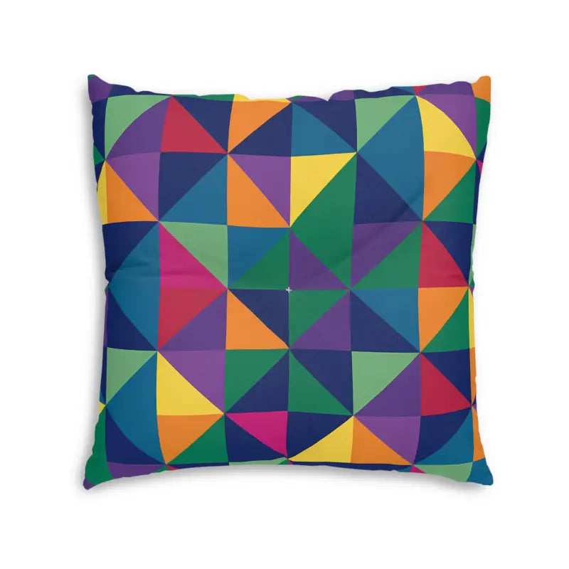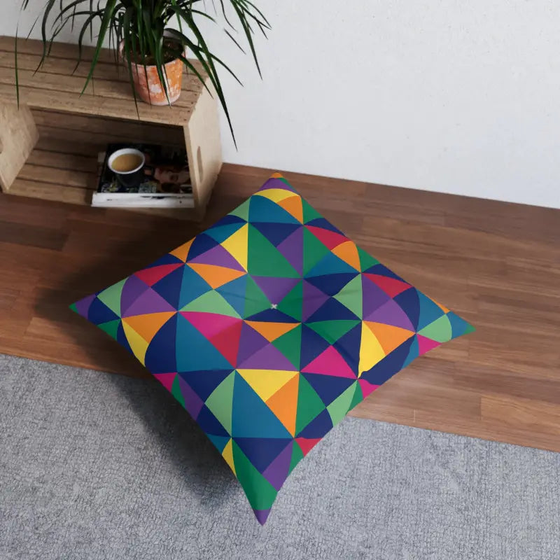 Transform your space instantly with this stunning geometric colorblock tufted floor pillow that delivers bold style and ultimate comfort wherever you need extra seating. Picture yourself sinking into jewel-toned perfection as vibrant blues, emerald greens, sunset oranges and magentas dance across a modern mosaic of triangles and quarter-circles.