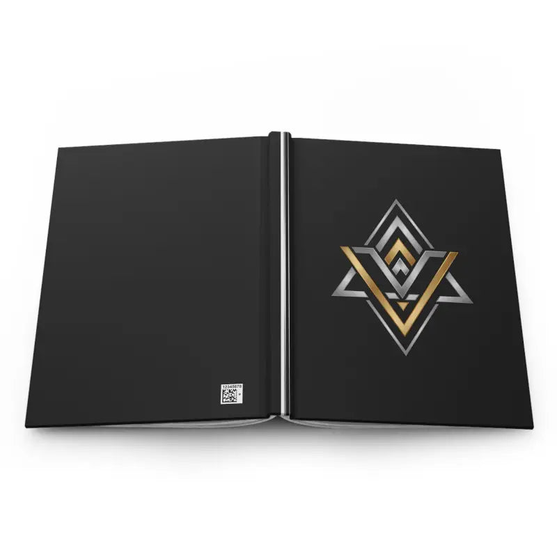 ✦ Premium matte black hardcover with metallic geometric gold and silver emblem design