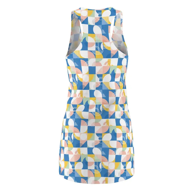 Retro Tile Geometric Pastel Racerback Dress – Effortless Motion & Color