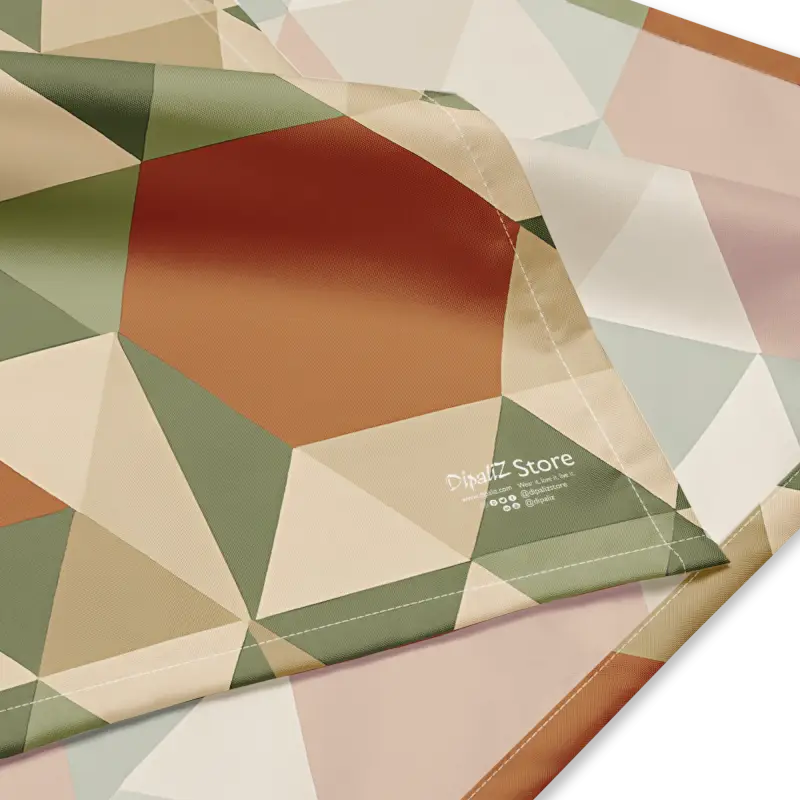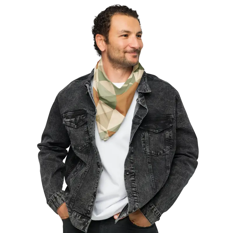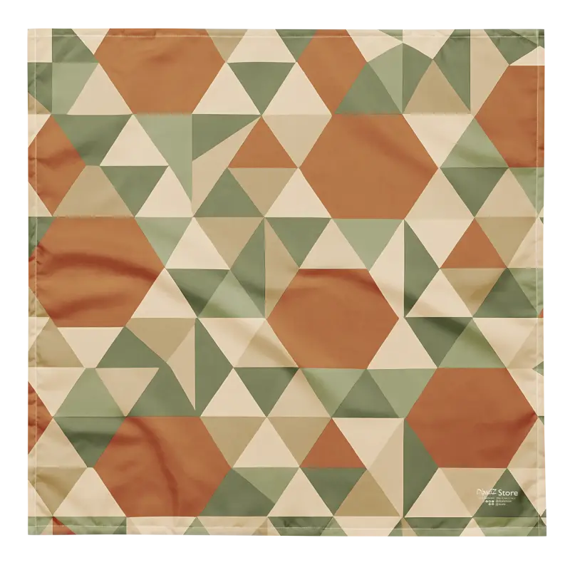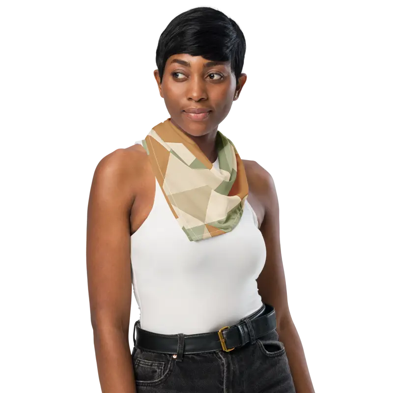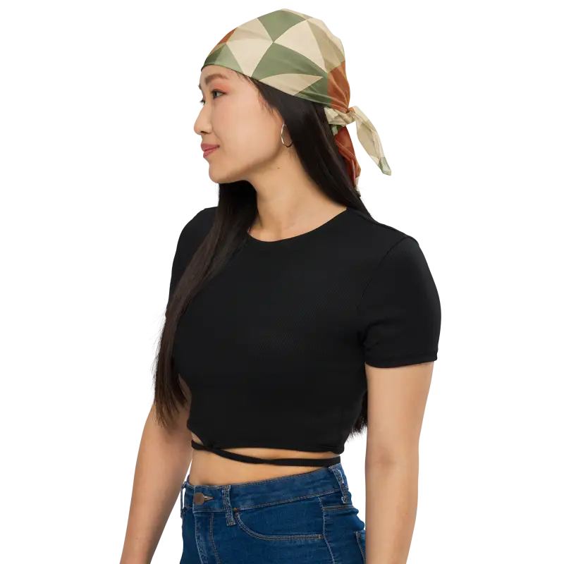 Catch the rush of the city or drift into ocean calm with this print bandana that wraps around your wrist, head, or neck in a heartbeat. Feel the smooth weave and vivid all-over print bandana pattern come alive as turquoise, coral, and indigo triangles flow like street art caught in a sea breeze.