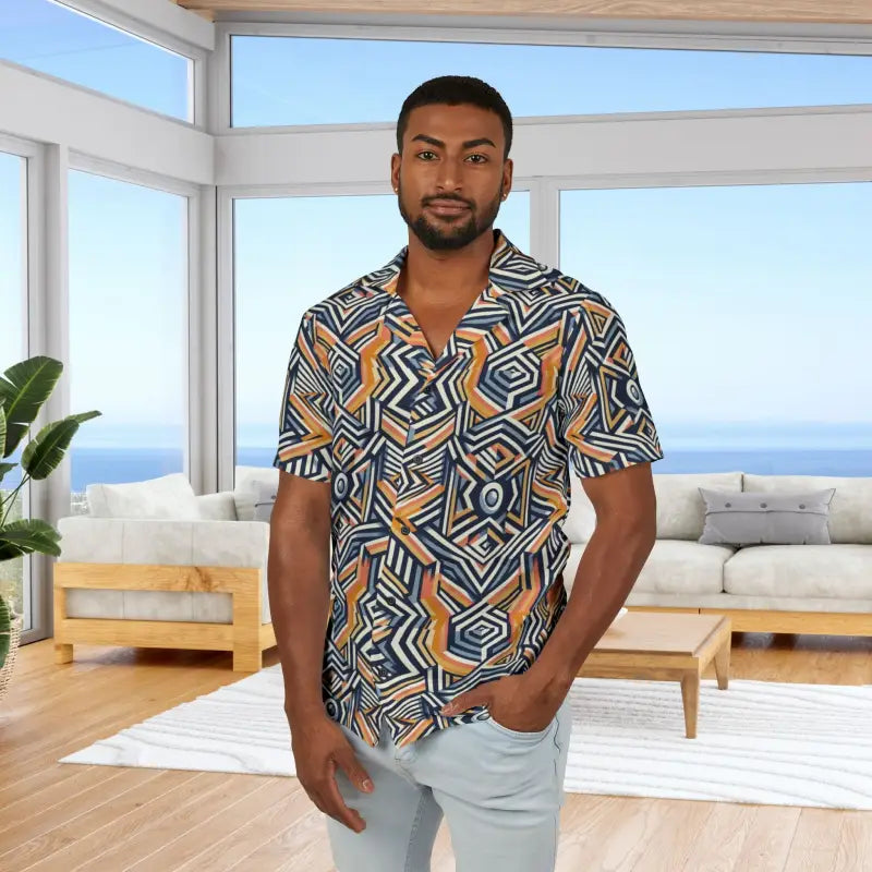 Ready to upgrade your summer look with serious style? Turn up the energy with this bold geometric pattern Hawaiian camp shirt designed for unforgettable comfort and standout appeal.