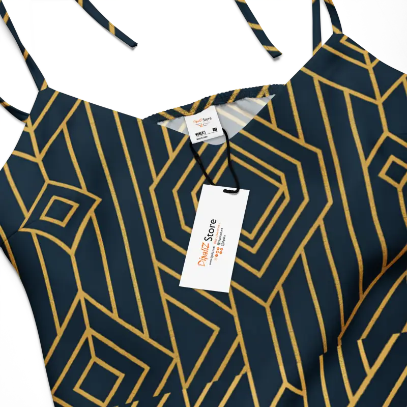 Step into the spotlight with this premium quality midi dress featuring a bold geometric pattern on a dark background that turns heads everywhere you go.