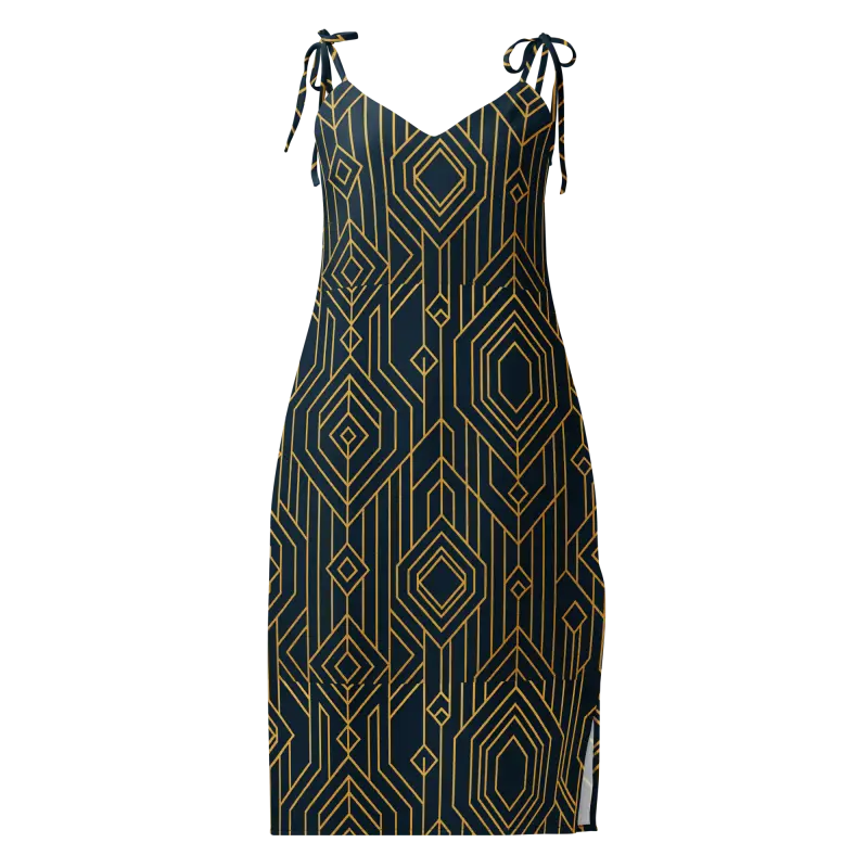 Midi Dress - Geometric Pattern Dark Background Premium - DipaliZ