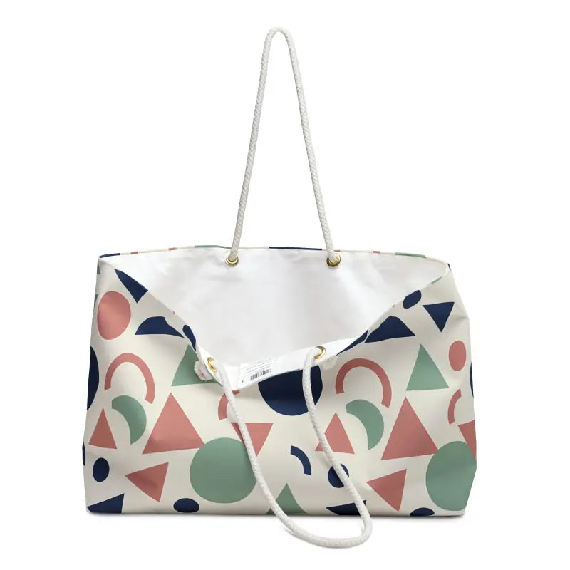 Geometric Shapes Weekender Bag - Retro Pastel Travel Tote - DipaliZ
