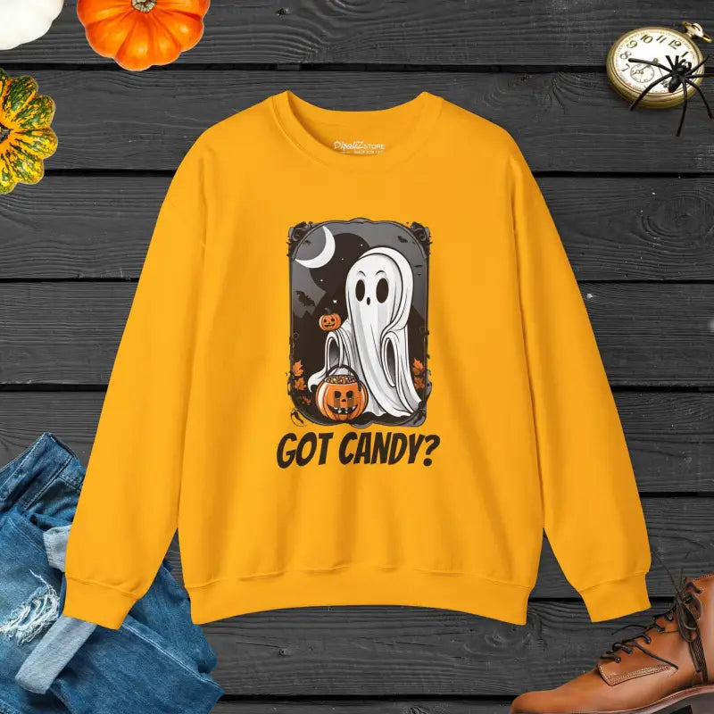 Get ready to bring the spooky fun to your wardrobe with the awesome Spooky Candy Ghost Unisex Sweatshirt, an irresistible pick for the Halloween season! Designed with an adorably cheeky ghost holding candy and the playful phrase Got Candy, this sweatshirt promises to keep you in high spirits as you celebrate all things Halloween. But it’s not just about charming appearances – this sweatshirt guarantees comfort and durability too!
