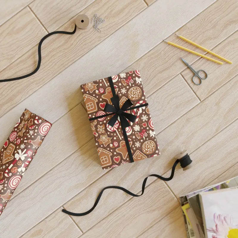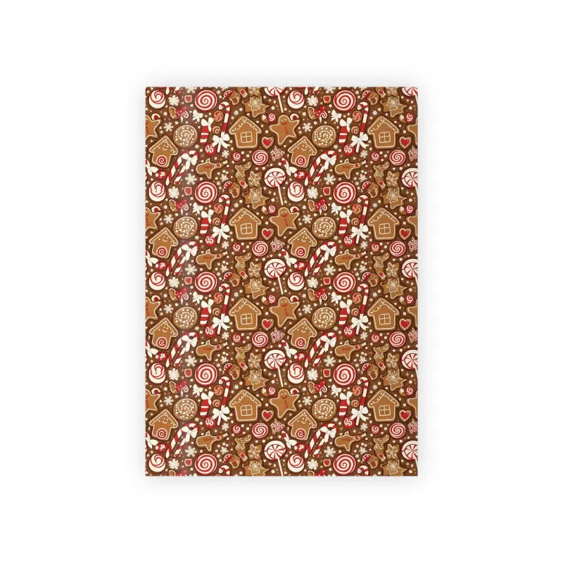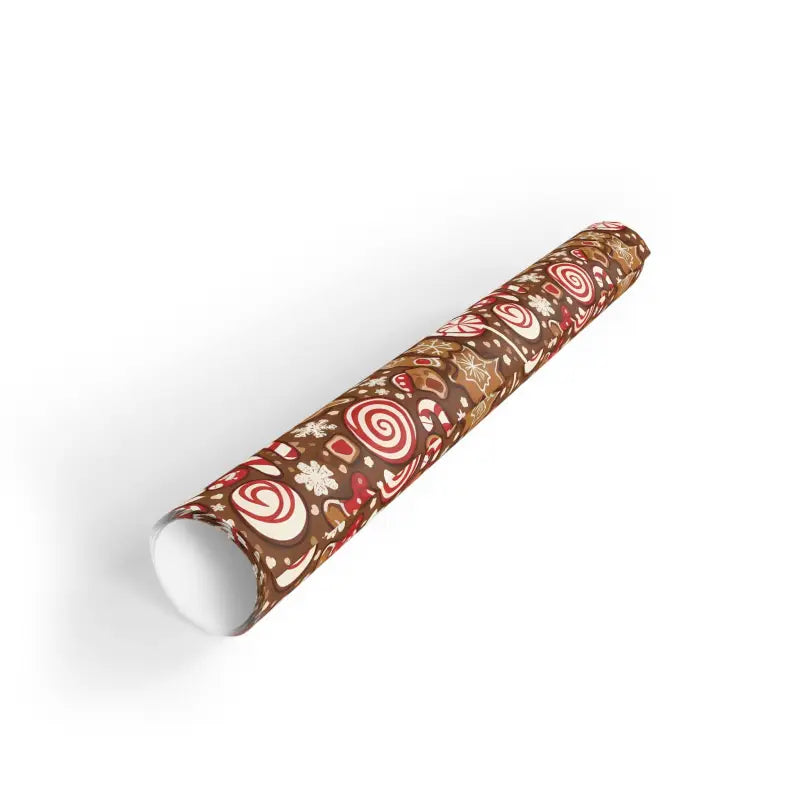 Wrap your gifts in a dreamy smooth satin finish that feels like a warm holiday hug, setting the scene for cookie swaps and mantel magic. Imagine gingerbread houses, twinkling stars, lollipops and snowflakes dancing across a rich chocolatey backdrop.