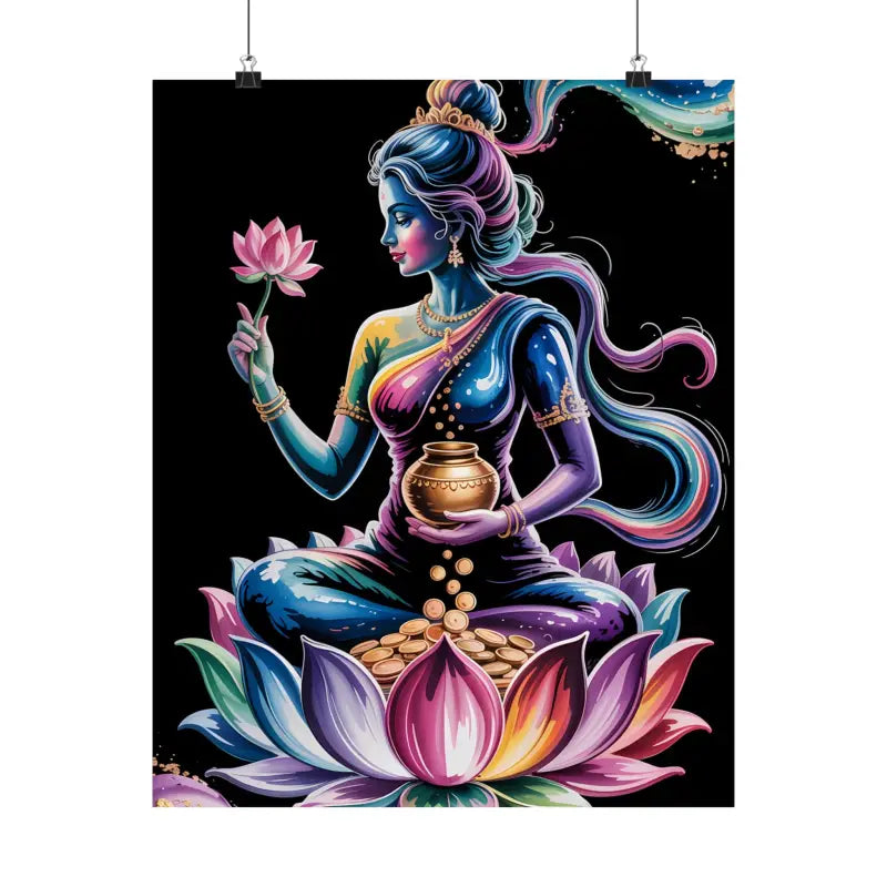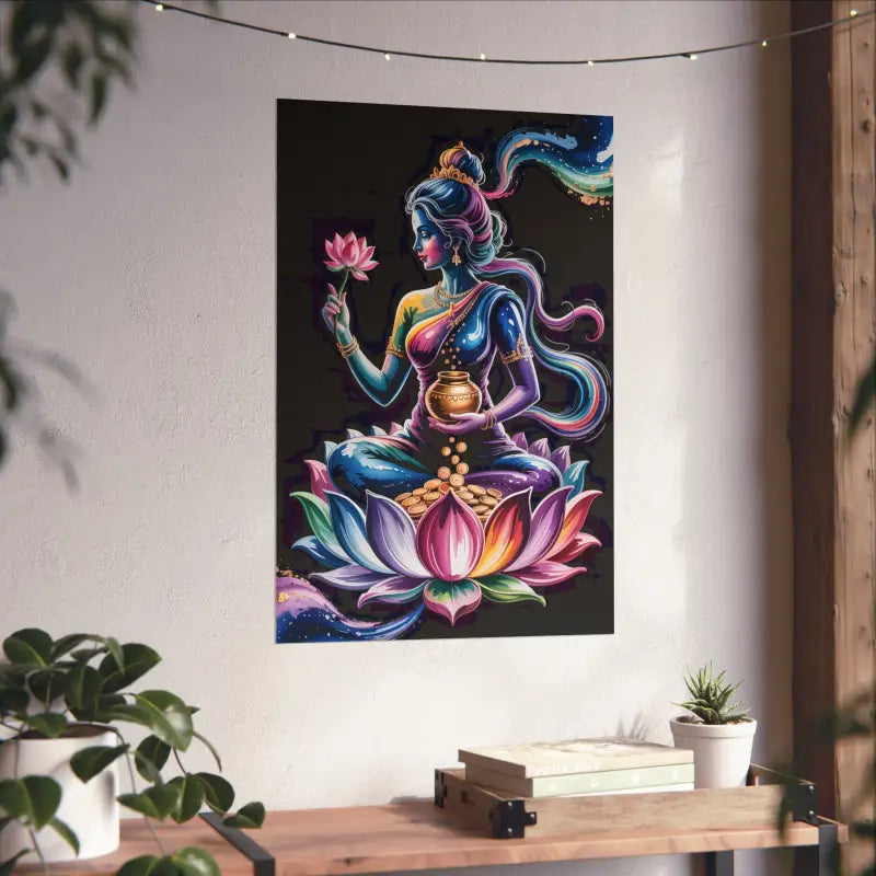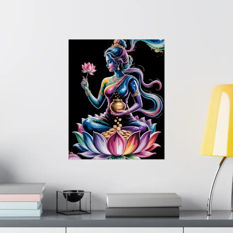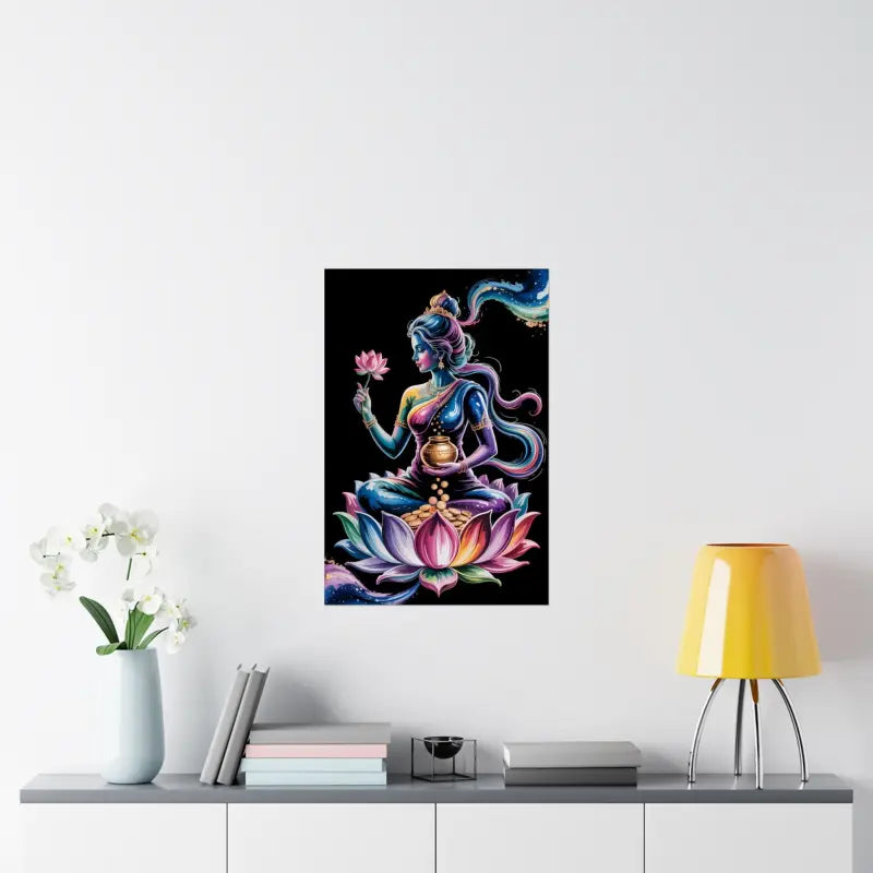 Lakshmi Lotus Poster - Matte Vertical Spiritual Wall Art - DipaliZ