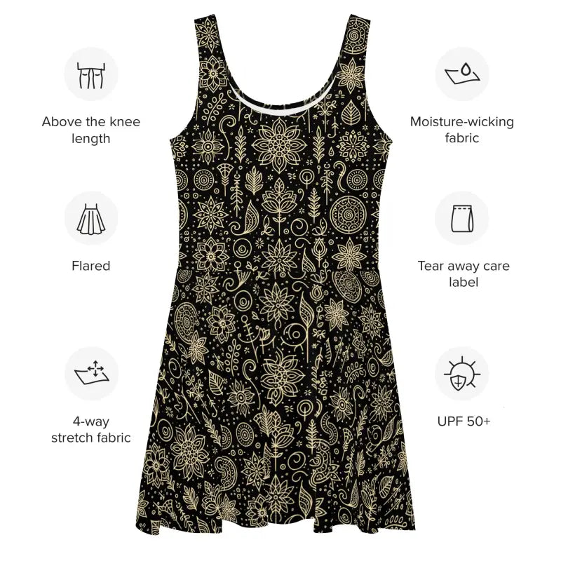 Get ready to unleash your inner fashionista with the Vibrant Nature Skater Dress and its show-stopping Intricate Design Flare. This dress is designed to make heads turn, offering a fresh and lively alternative that every wardrobe craves. Whether you're hitting the town with friends or attending a more formal event, this stunning skater dress ensures you leave an unforgettable impression.