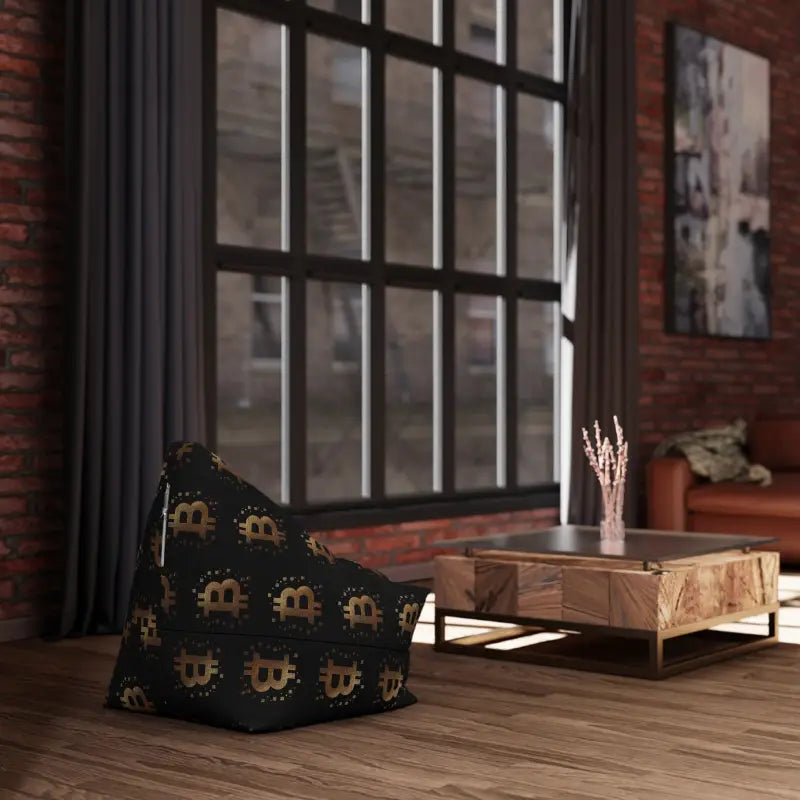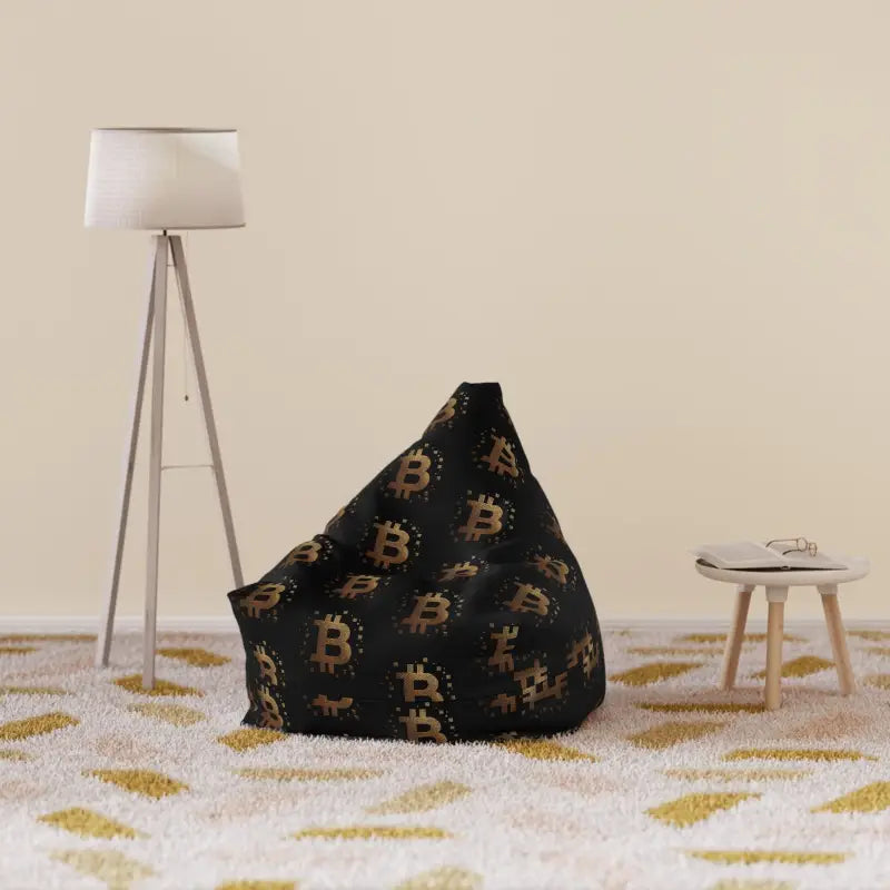 Revolutionize Your Space with the Golden Bitcoin Bean Bag Cover!