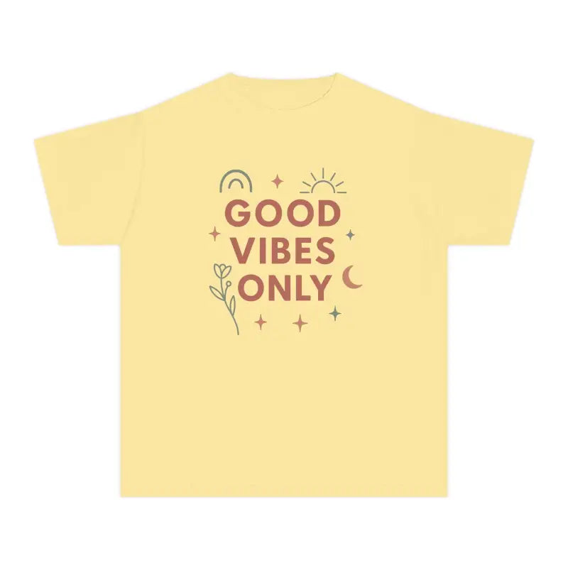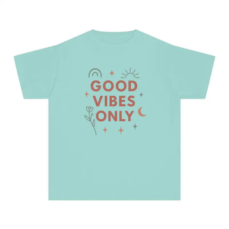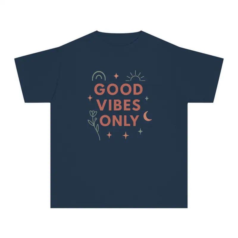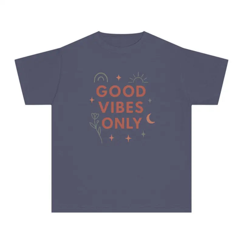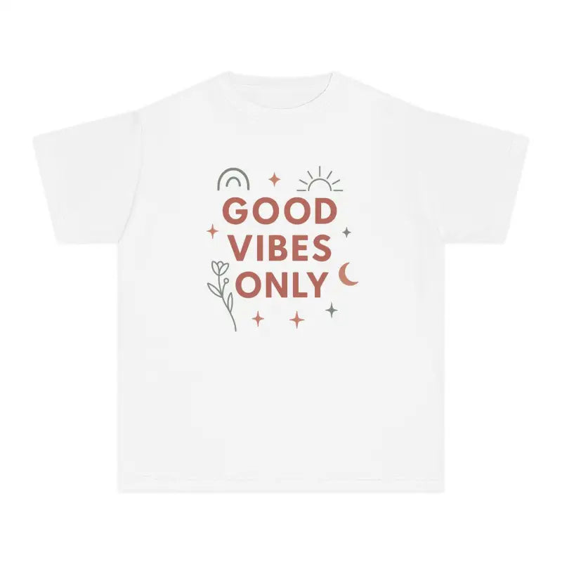 Feel the soft hug of sunshine every time your kid slips into this positive energy shirt that whispers good vibes with every step. Imagine a playful day at the park, the tee’s airy feel and upbeat message sparking smiles from classmates and friends.