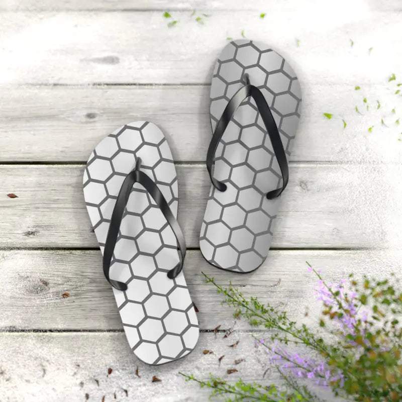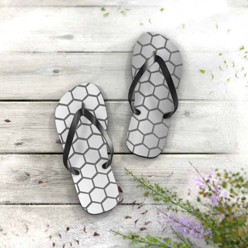Design your ultimate summer look with the Stylish Gray Hexagon Flip Flops, blending chic modern style with unmatched comfort. Going beyond ordinary, these pattern flip flops feature a striking gray hexagon design that’s sure to catch eyes and complement any summer outfit. Ideal for beach days, poolside lounging, or casual city strolls, these flip flops promise to add a dash of character to each step you take in the sun.