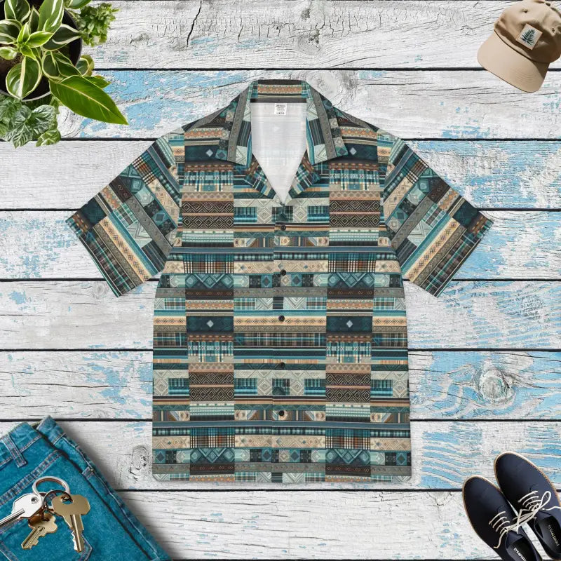 - Unique green plaid Hawaiian camp shirt design for effortless summer style that breaks away from the ordinary.
