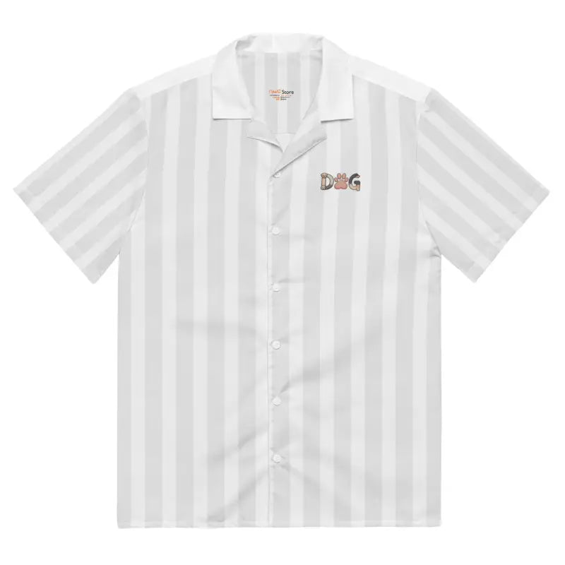 Unisex Button Shirt White Stripes Dog Emblem Cool Style DipaliZ