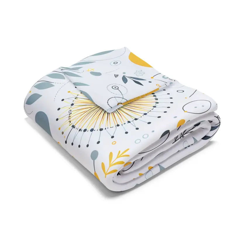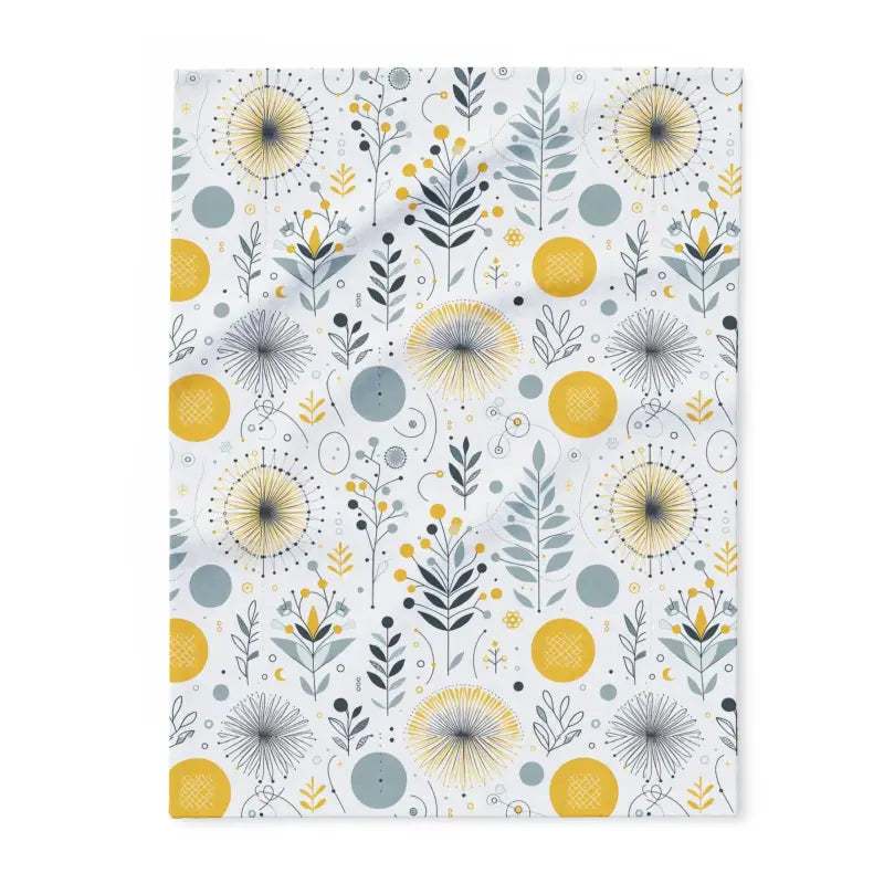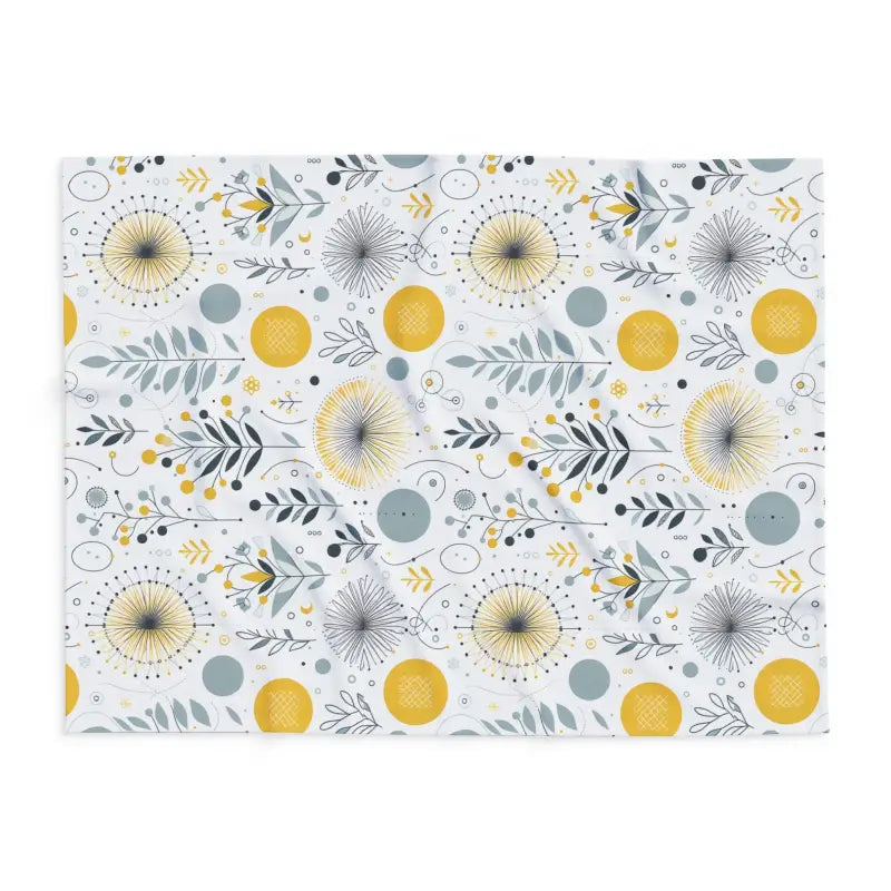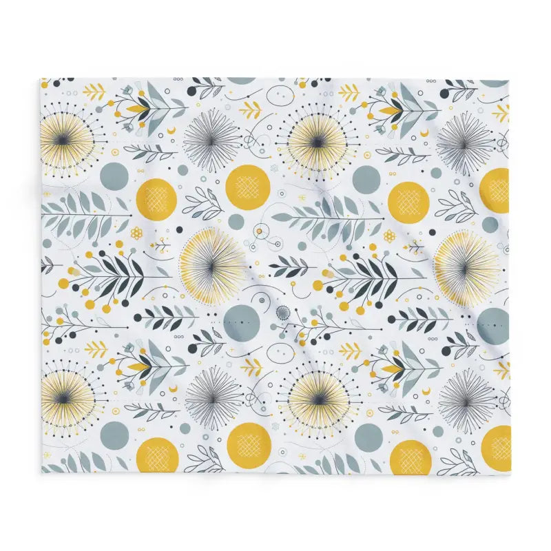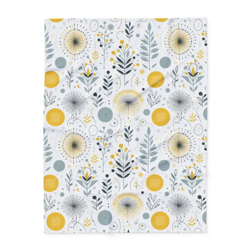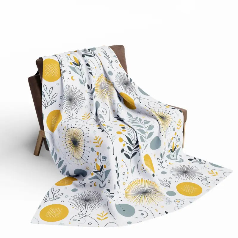 The design is where this fleece blanket truly shines. Featuring a charming yellow floral arctic pattern, the print adds a lively and cheerful character to the neutral grey base. This combination of colors creates a balanced and contemporary look that both rejuvenates tired spaces and makes a bold decor statement. The innovative floral print is more than just decoration—it’s a pop of creativity that brings energy and sophistication into any room.