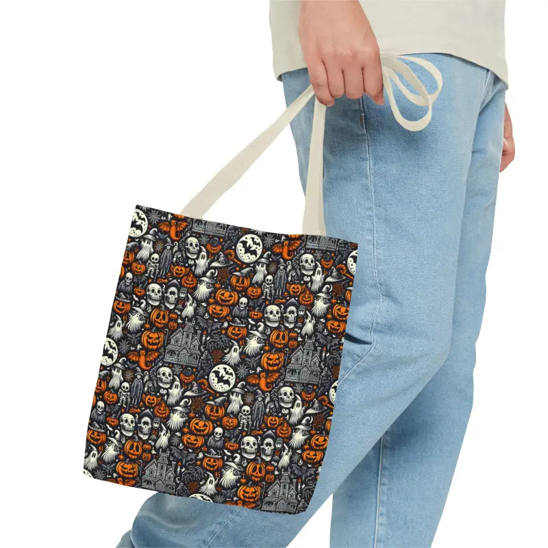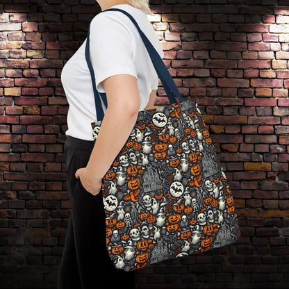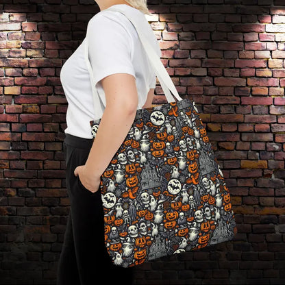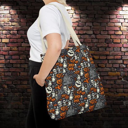 Ready to cast a spell on your everyday style? Our AOP Tote Bag with bold Halloween pattern is here to take you from errands to adventures in spooky-chic flair.