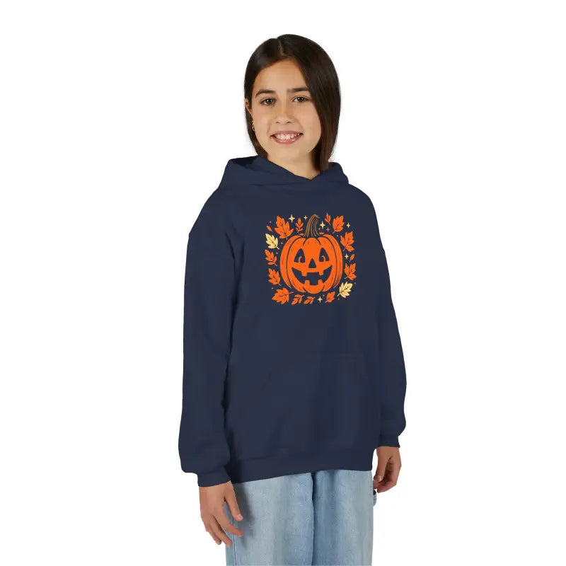 Grab this Pumpkin Youth Hoodie before the leaves hit the ground. Treat your youngster to the ultimate kids Halloween gift and wrap them in cozy fall vibes today!