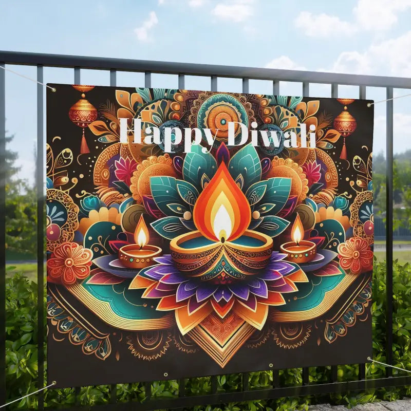Happy Diwali Stunning Matte Banner with Brass Grommets - DipaliZ