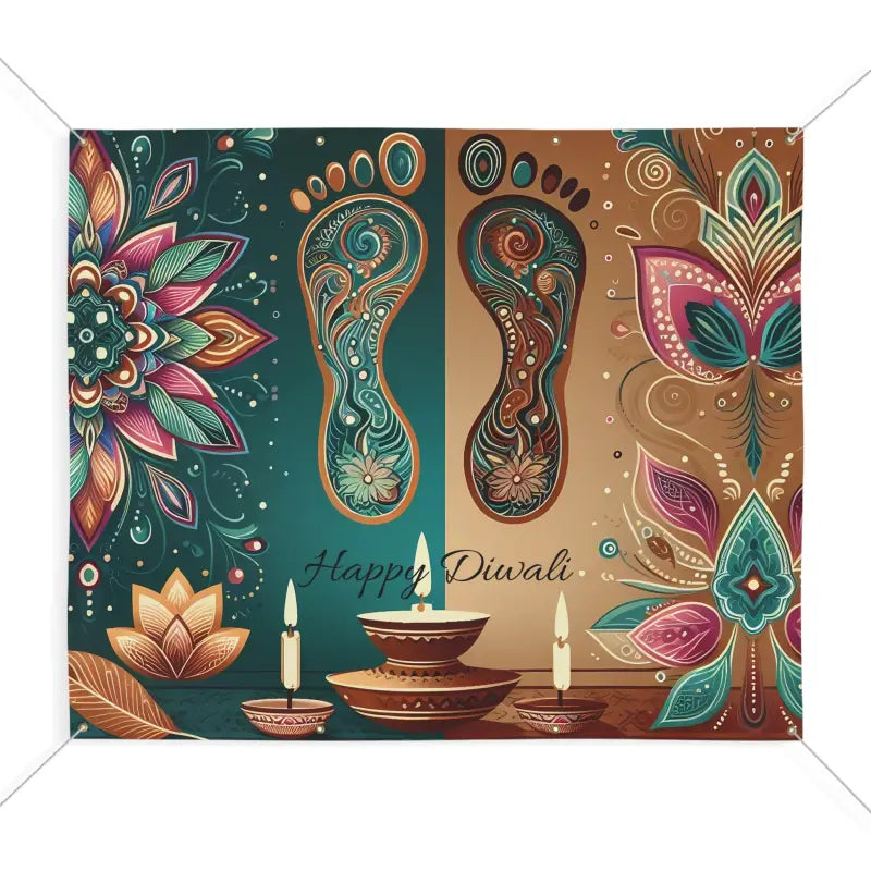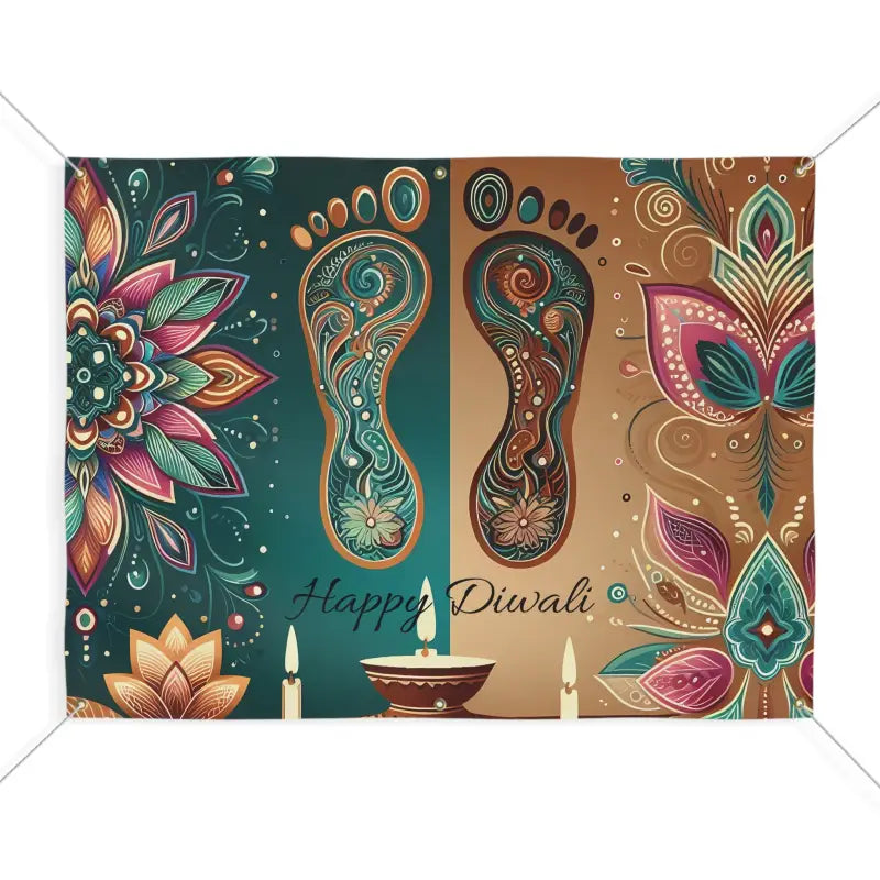 Vibrant Happy Diwali Banner Laxmi Feet Design 15oz Block-Out Scrim DipaliZ