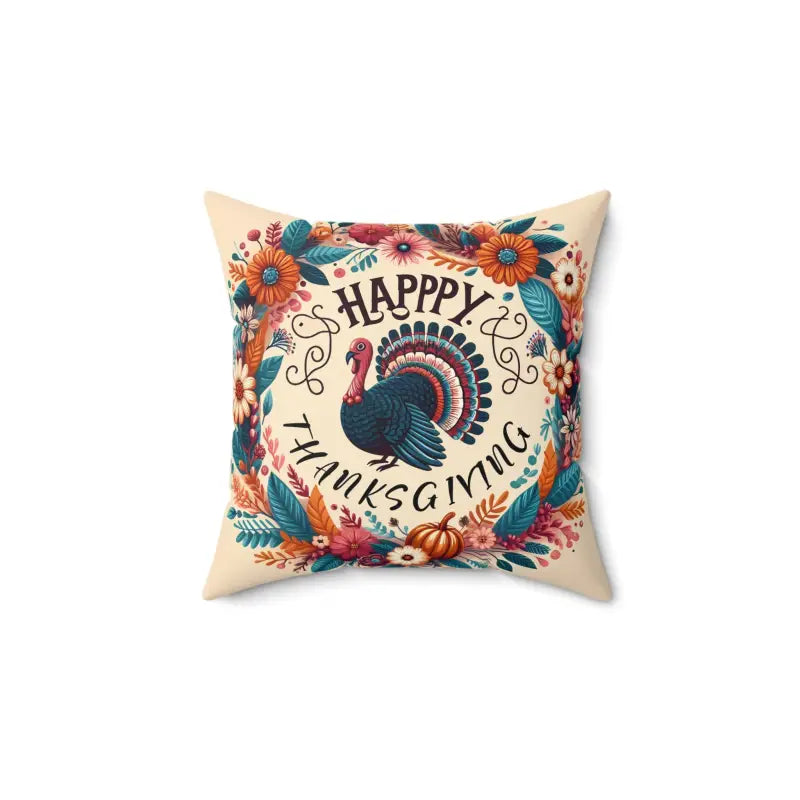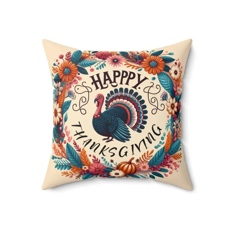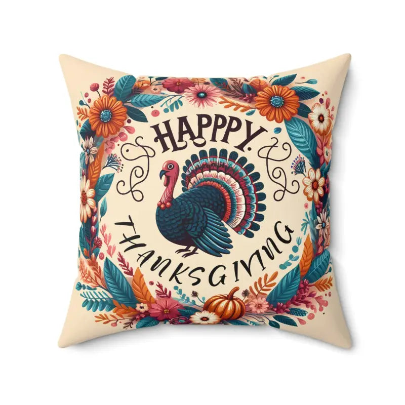 Dive into the spirit of Thanksgiving with the Cozy Thanksgiving Polyester Pillow, adding a splash of style to your festive decor. This spun polyester square pillow flaunts a cheerful Happy Thanksgiving Turkey design, making it a must-have accent for your home. Its vibrant colors and plush feel will transform any space into an inviting and celebratory environment.
