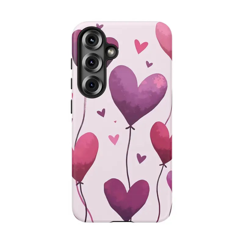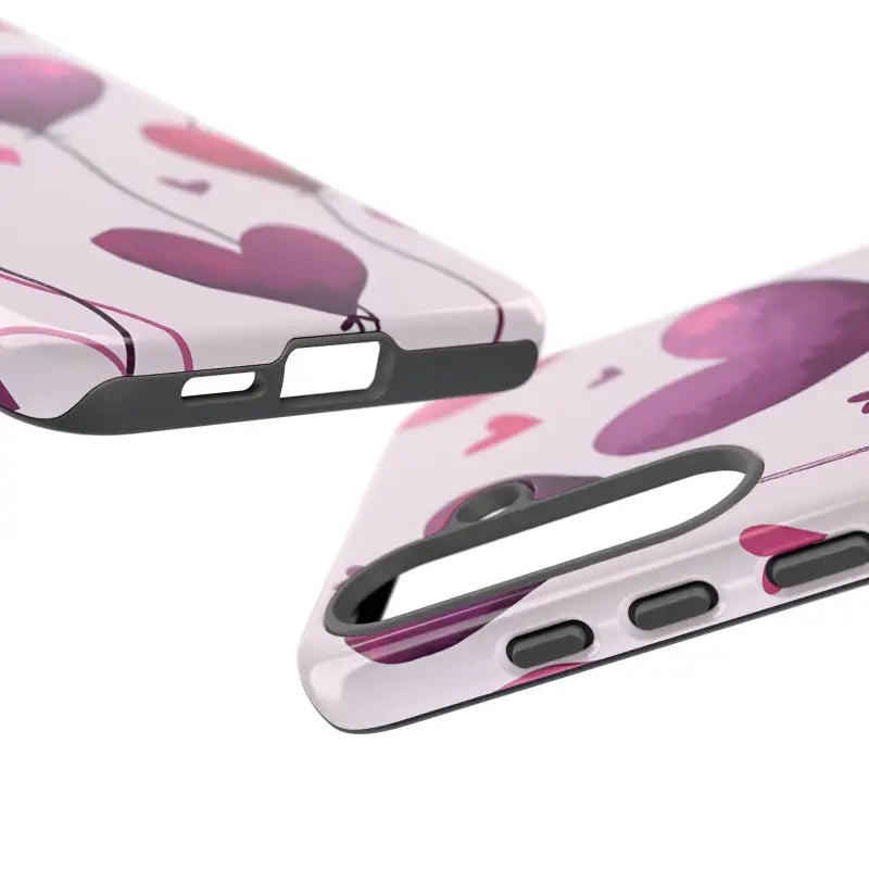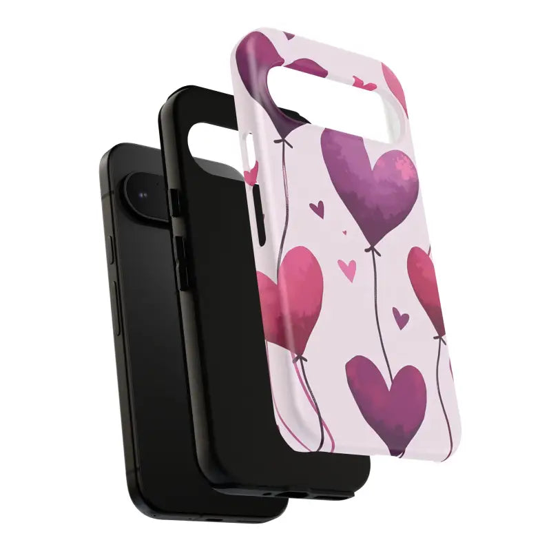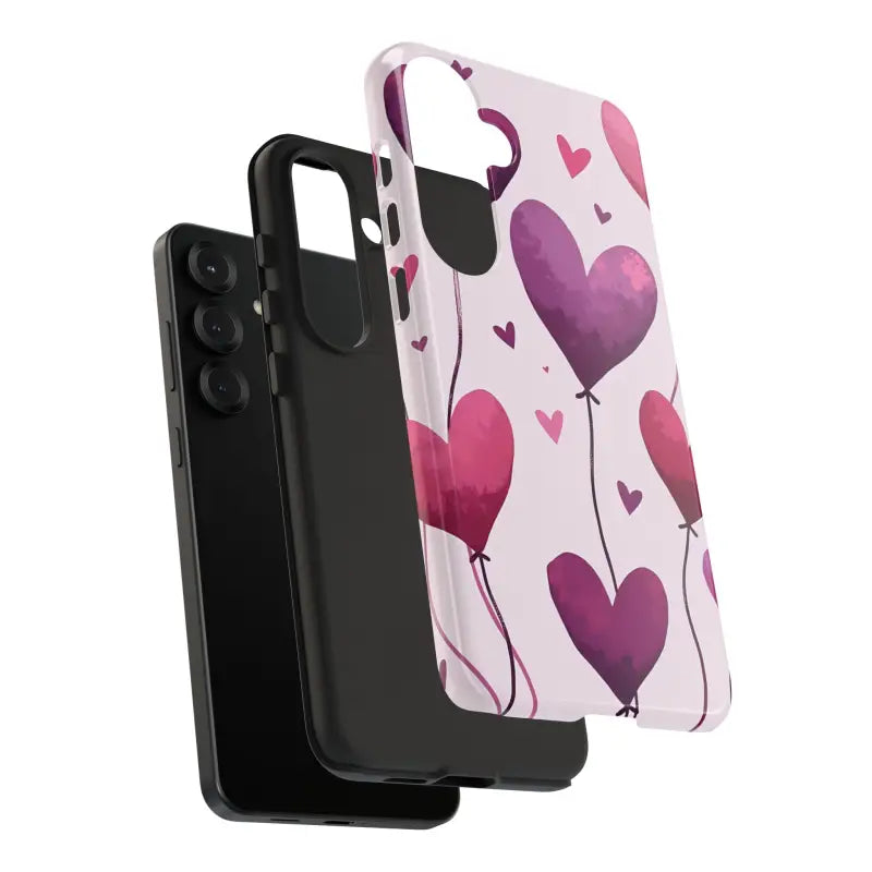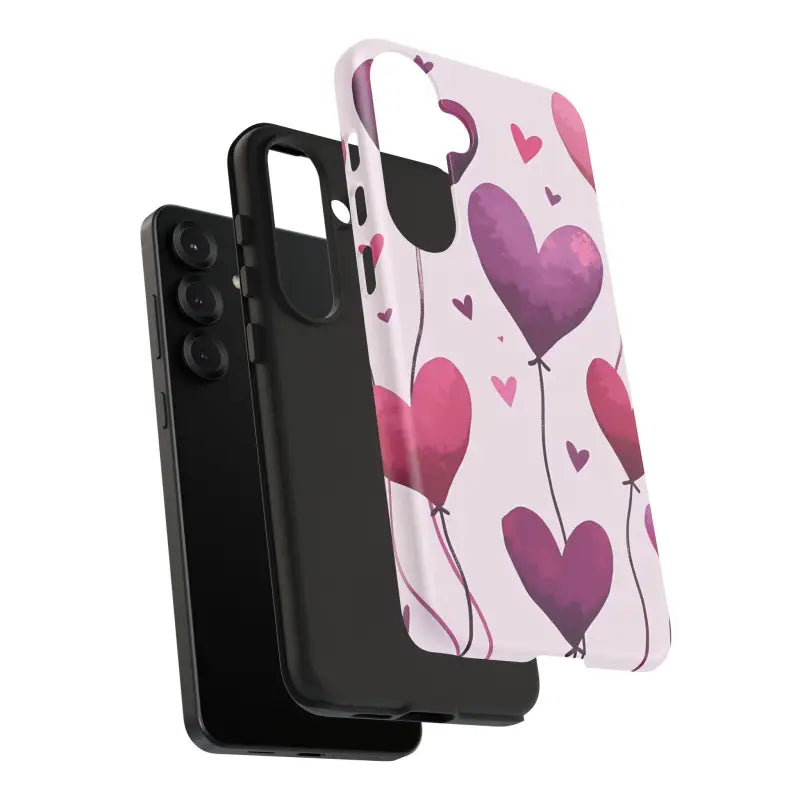 The design is a vibrant display of heart balloons that seem to float with lightness and joy. The artistically rendered print turns the typical phone case into a piece of art that embraces love and festivity. Whether you're celebrating Valentine’s Day, anniversaries, or birthdays, this balloons phone case is built to impress while protecting your device.