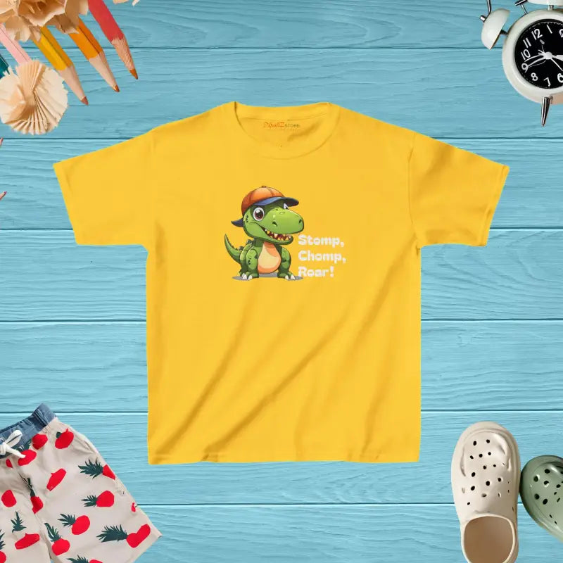 Get ready to embark on a Jurassic journey with the coolest shirt ever: the Roar in Dinosaur Heavy Cotton Tee for Kids! This isn't just any ordinary tee; it's an absolute treasure for young explorers and dinosaur enthusiasts everywhere. Perfect for your little one's dinosaur collection, this awesome shirt showcases stomping, chomping, and roaring dinos ready to spark major fun. Whether climbing, crawling, or leading an imaginary expedition, this tee ensures your kiddo stands out with iconic style and ultimate comfort.