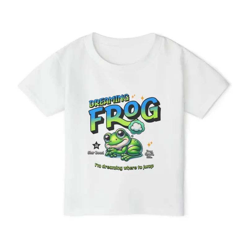Give your adventurous tot the gift of charm and comfort. The Dreaming Frog Heavy Cotton Toddler Tee is not just a piece of clothing; it's an invitation to play, learn, and grow in style—and with every jump and adventure, create cherished memories adorned in delightful dreams. Transform every outing into a whimsical event. Don't wait; elevate your toddler’s wardrobe today!