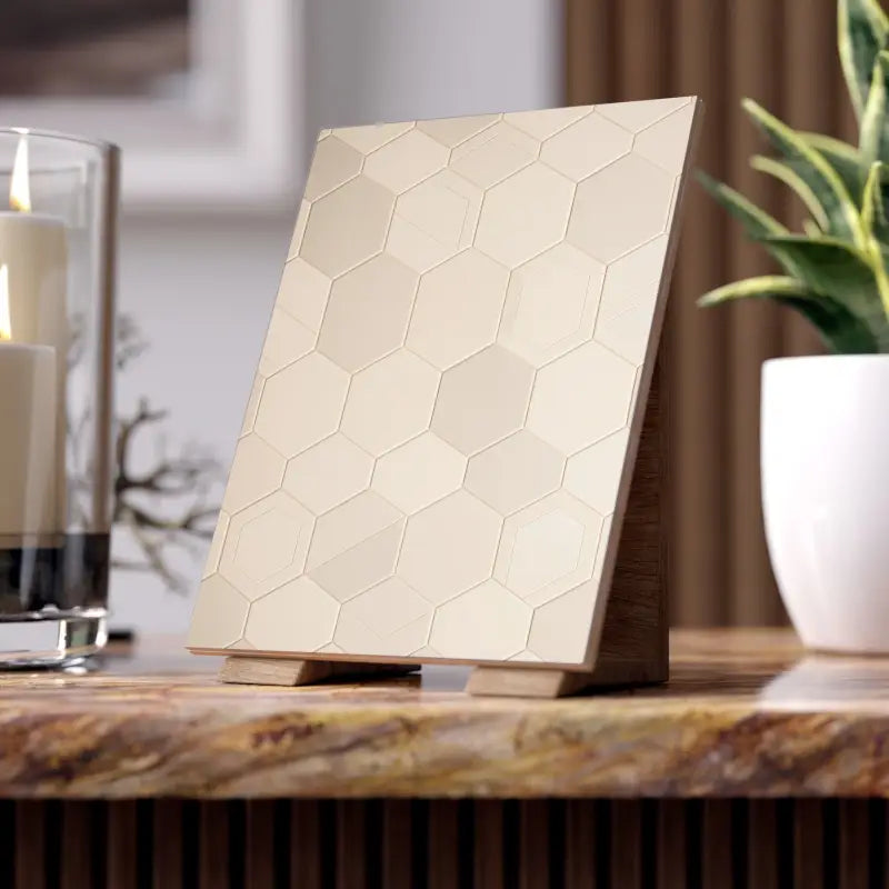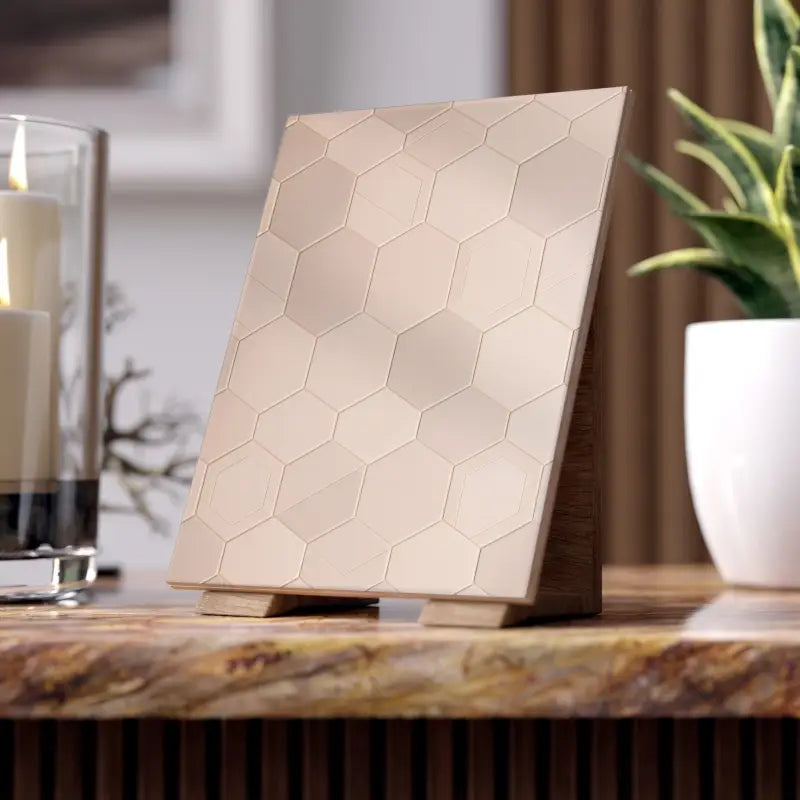- Showcases a striking ceramic photo with a contemporary hexagon pattern ideal for photo tile art.
