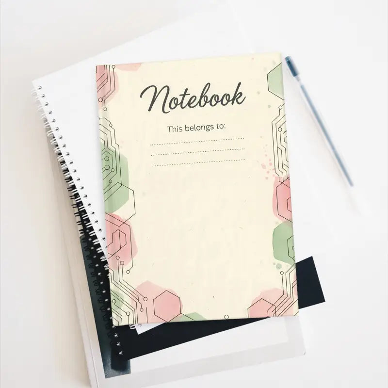 Soft mint and blush hexagons dance with delicate floral lines, giving this pastel journal notebook a dreamy, modern vibe. It’s perfect for sketching, journaling, or jotting down spontaneous ideas wherever inspiration strikes.