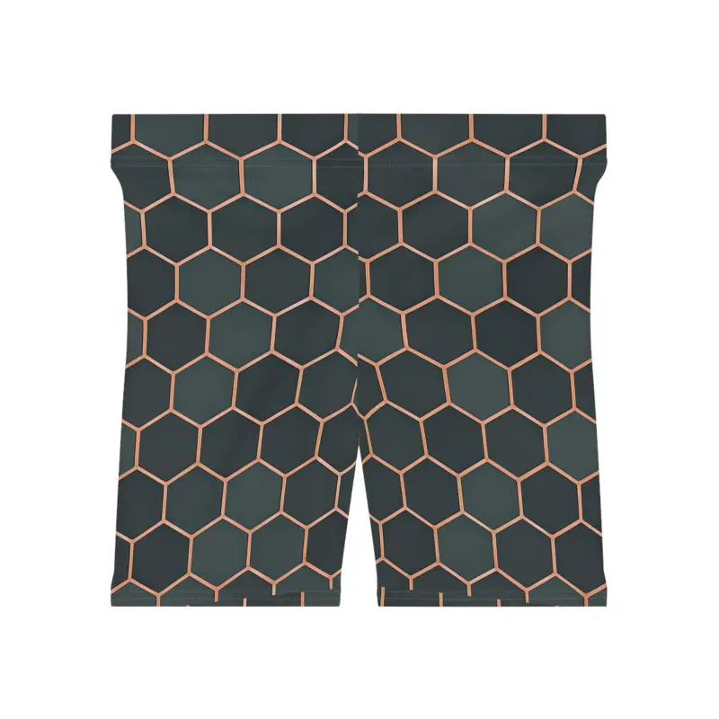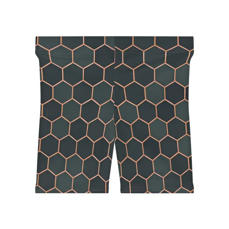 - Women's biker shorts featuring a vibrant hexagon pattern that makes you stand out at the gym or on the streets.