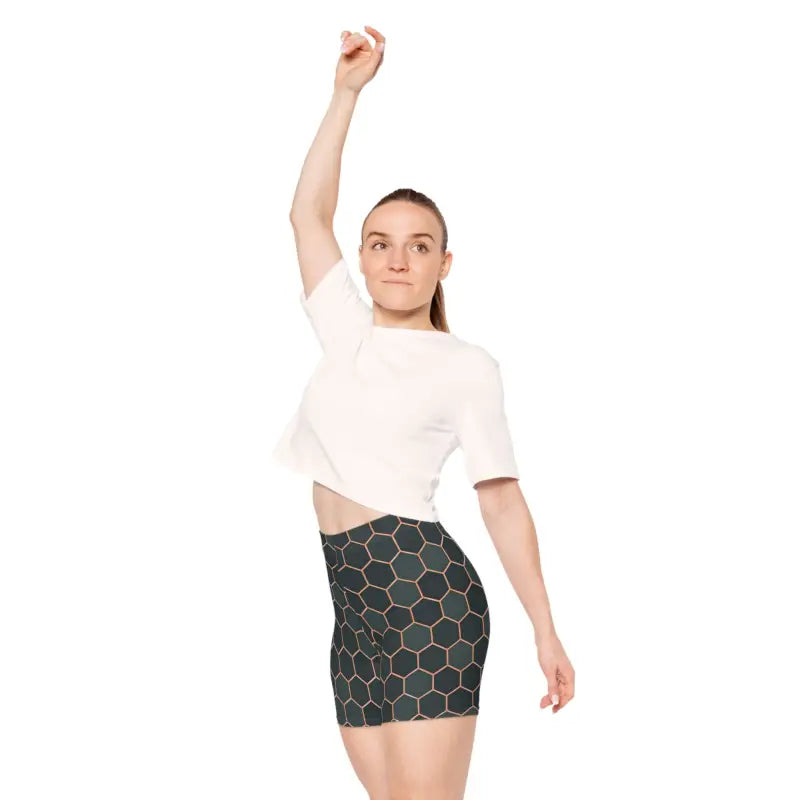 Premium Womens Biker Shorts Hexagon Pattern Active Comfort - DipaliZ