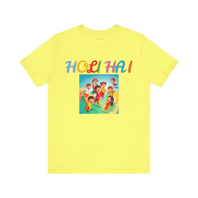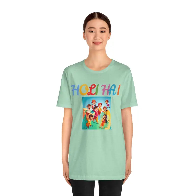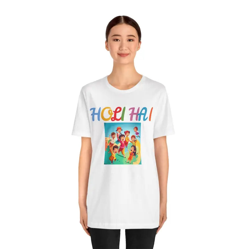 Step into the realm of vibrant Holi celebrations with our Holi Hai in Style: Vibrant Jersey Short Sleeve Tee! This isn't just any ordinary tee; it's your ticket to celebrating the Festival of Colors with flair. Our short sleeve tee promises to be your go-to apparel for any festive occasion, combining trendiness with unmatched comfort. Constructed from 100% Airlume combed and ring-spun cotton, this jersey short sleeve ensures you feel comfy throughout the celebrations while stealing the spotlight with its eye-catching print.