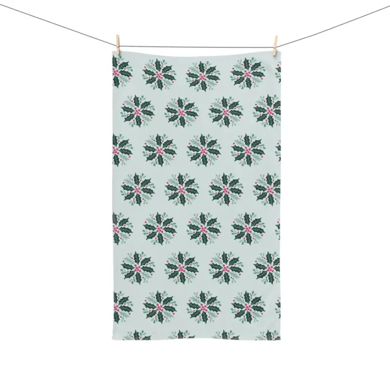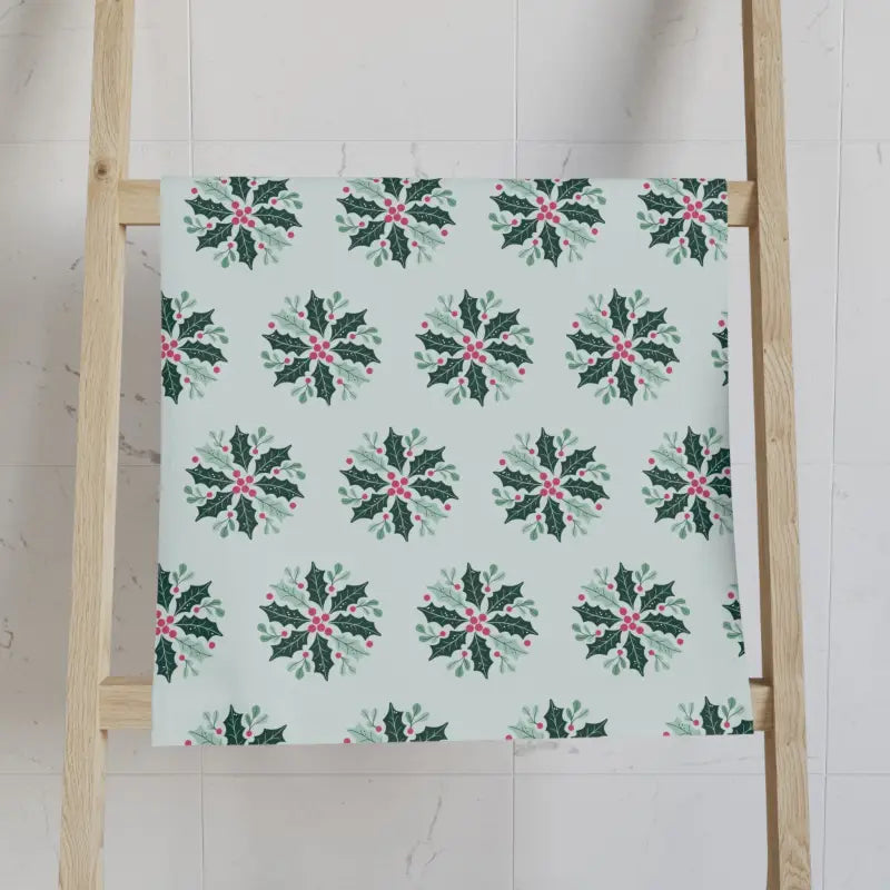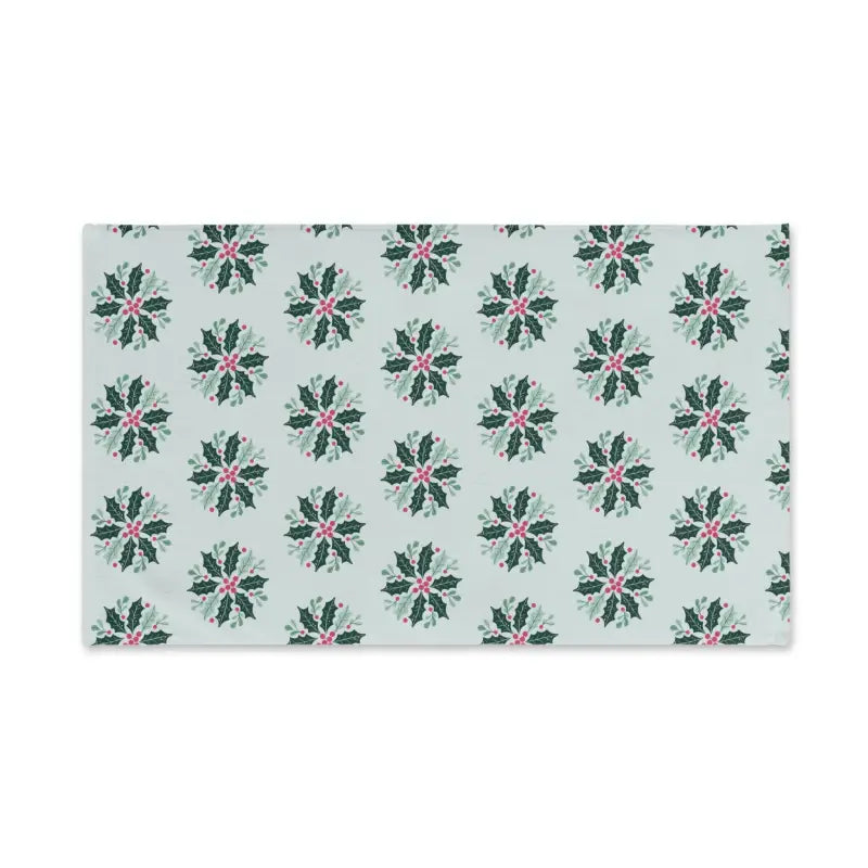 Holly leaves and Christmas berries Hand Towel. Enhance any bathroom area with a luxorious hand towel that adds character to its surroundings. Made with a polyester front that is a perfect canvas for printing and a soft cotton back, this premium hand towel is soft, light, and absolutely chic.