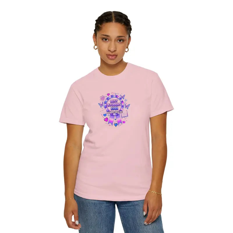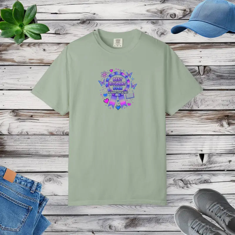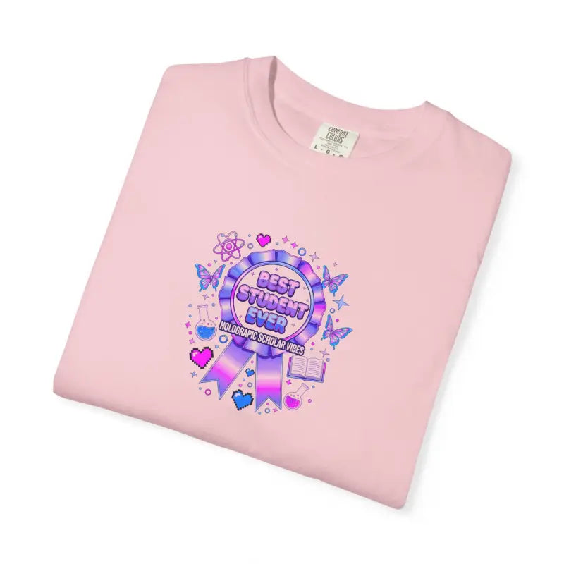 Celebrate your inner genius and wear your ambition with pride in this holographic scholar vibes tee that blends dreamy pastel charm with lived-in comfort. The best student evers design brings a playful, nostalgic vibe to your everyday wardrobe while keeping you cozy from first class to late-night study sessions. This is for the dreamers, the planners, the goal-chasers who want their style to feel as good as their future looks.