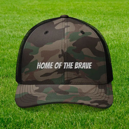 Print: Legendary camouflage pattern with Home of the Brave-inspired embroidery; sharp, distinctive, always on point.