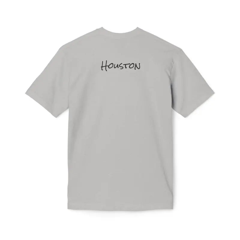 Print: Bold, high-contrast graphic of the Houston skyline across the chest, guaranteed to get noticed.