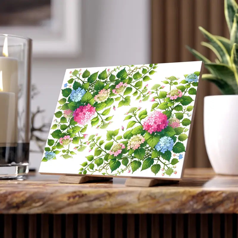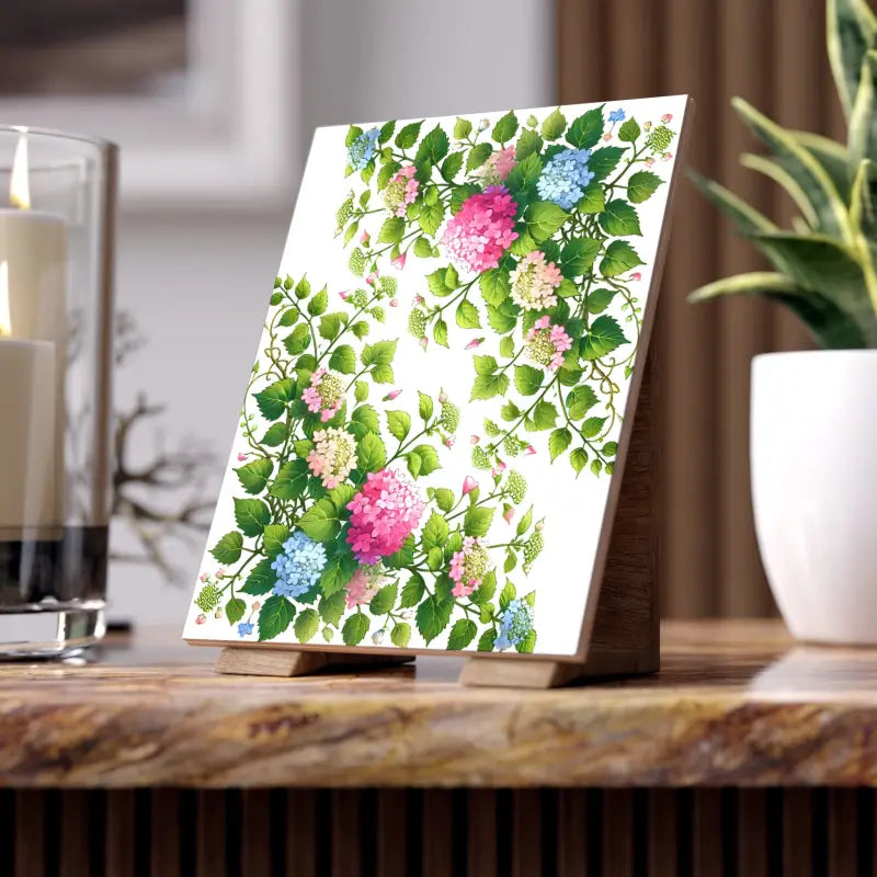 Transform your home into a vibrant oasis with the stunning Ceramic Photo Tile that brings the exquisite beauty of Hydrangea Vine and Blue Flowers right into your space. Whether you're sprucing up your kitchen, rejuvenating your bathroom, or adding a splash of elegance to any room, this ceramic photo tile is your ticket to sophisticated style. With the choice of either a glossy or matte finish, you can tailor your decor to shine bright or maintain a serene ambience, letting the detailed artistry of hydrangea vines and lovely pink and blue flowers captivate every eye.