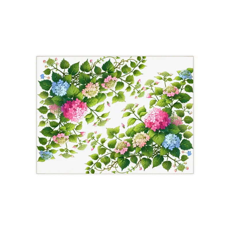 - Offers a dazzling representation of nature's beauty with intricate hydrangea vine patterns adorned with charming blue and pink flowers.