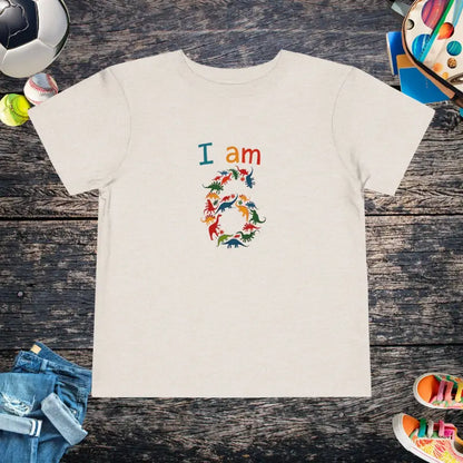 Get your kiddo ready for adventure with this vibrant dinosaur toddler tee! This cute short sleeve shirt is designed just for little explorers who LOVE dinos, making every day extra fun and playful. The cool print celebrates turning 6 in style, perfect for birthdays, family gatherings, or playdates at the park. Crafted from lightweight, soft fabric, this short sleeve shirt ensures comfy wear all day while letting kids move, jump, and laugh freely. Itâs the perfect short sleeve choice for boys and girls who want a standout look and super soft feel. Give the dinosaur lover in your life a piece as bold as their imaginationâthis dinosaur toddler tee is the ultimate gift for dino-loving six-year-olds!