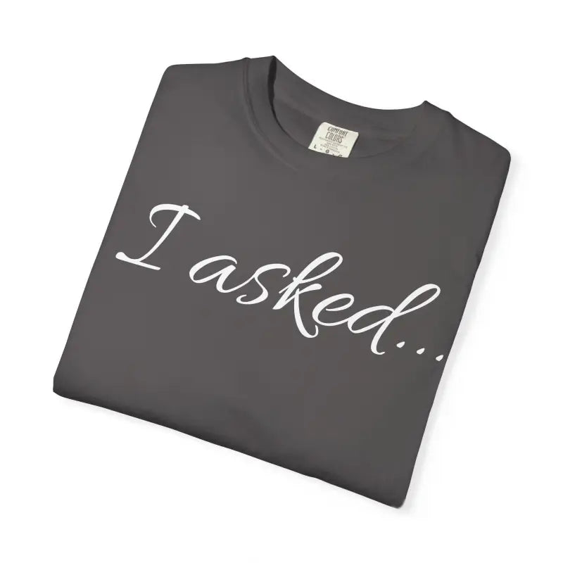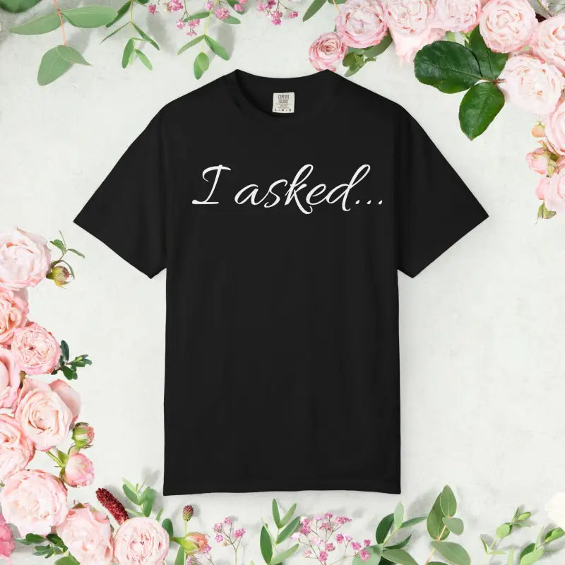 Print: I Asked... – a witty, head-turning design guaranteed to spark curious glances and real conversations wherever you go, adding energy to every gathering.